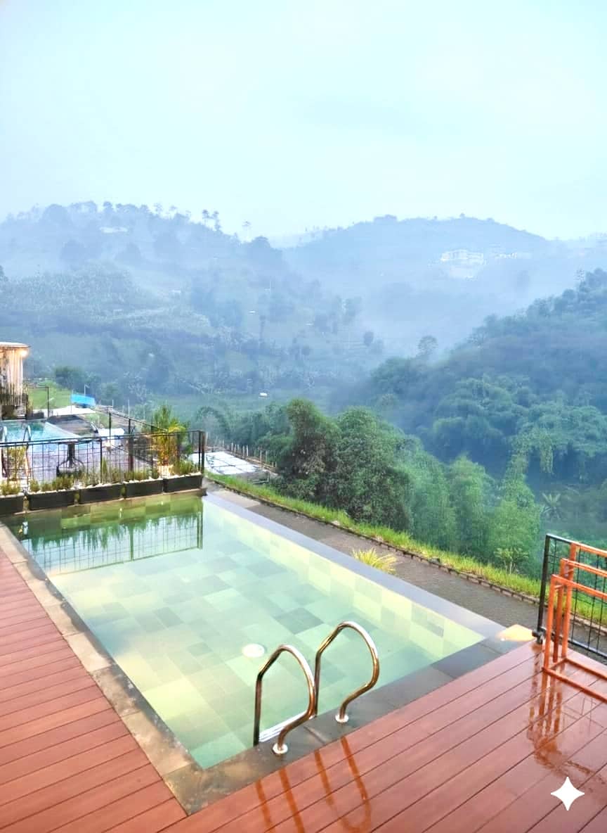 Breathe, relax, and enjoy the breathtaking city view of Bandung from our peaceful villa at Dago Resort. Tucked away in the cool highlands, this spacious retreat is perfect for families and friends seeking fresh air, serenity, and togetherness. Our features : - 5 comfortable bedrooms, - 4.5 bathrooms - Living room - Fully equipped kitchen - Heated pool - Jacuzzi - Movie room - Bbq area - Koi fish pond Your perfect getaway is just a booking away — comfort, space, and serenity in one place.