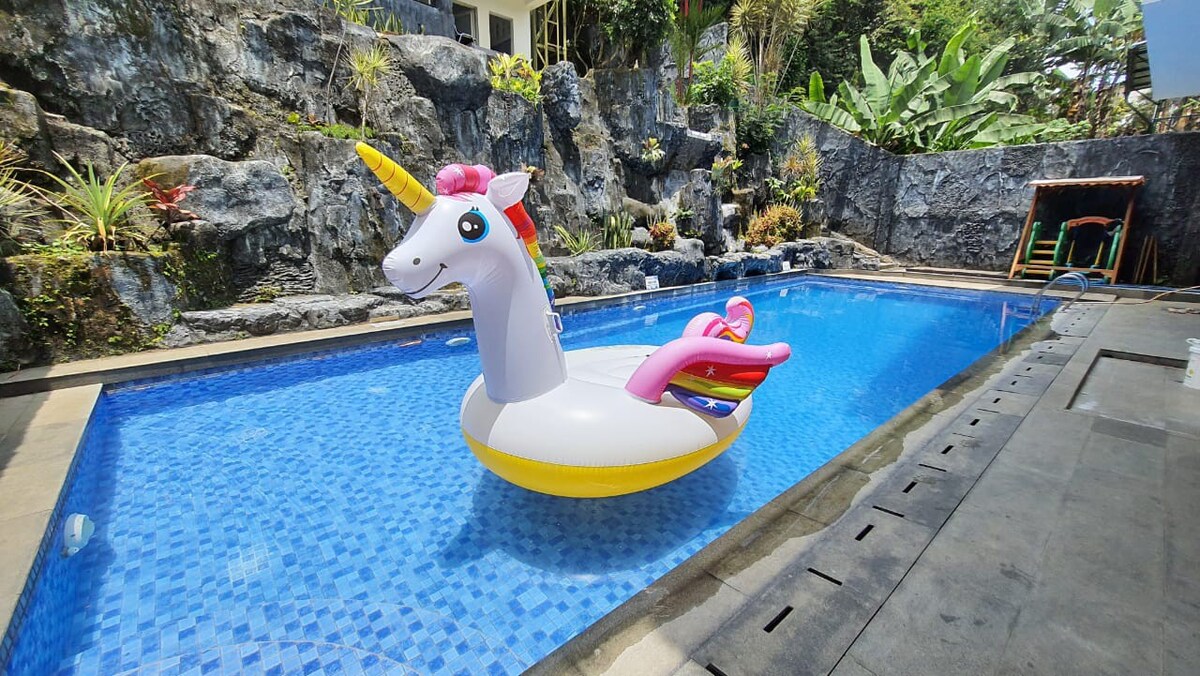Breathe, relax, and enjoy the breathtaking city view of Bandung from our peaceful villa at Dago Resort. Tucked away in the cool highlands, this spacious retreat is perfect for families and friends seeking fresh air, serenity, and togetherness. Our features : - 5 comfortable bedrooms, - 4.5 bathrooms - Living room - Fully equipped kitchen - Heated pool - Jacuzzi - Movie room - Bbq area - Koi fish pond Your perfect getaway is just a booking away — comfort, space, and serenity in one place.