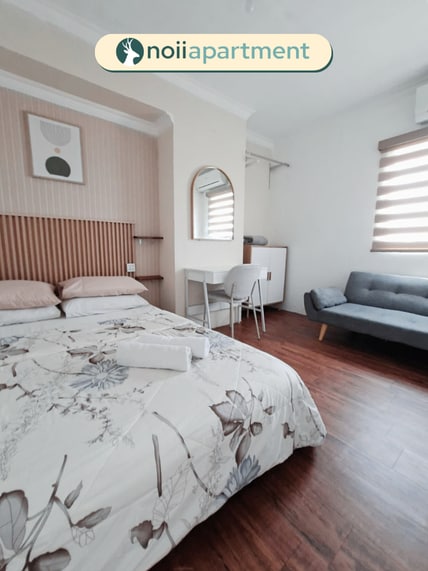 Immerse yourself in the vibrant heart of Bandung at this stylish studio on 10th floor of Parahyangan Residences. Enjoy modern amenities like a fully-equipped kitchen, high-speed Wi-Fi, and a 50" smart TV with Netflix. Indulge in resort facilities, contactless check-in, and nearby conveniences for a perfect staycation, holiday, or work-from-home experience. Now featuring a Reverse Osmosis drinking water.