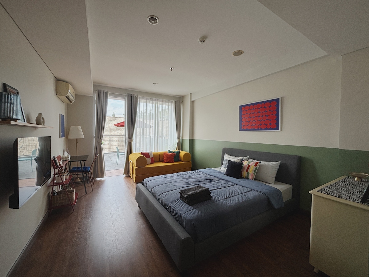 Welcome to Chroma Studio Apartment by Moin BnB! Located in strategic area only 5 mins walk to the famous Dago street, 10 mins walk to Sabuga jogging track and Bandung zoo, ca. 35 mins to floating market Lembang by car. We accommodate up to 4 guests. We have a queen size bed 200x160 cm & sofa bed 180x160cm, a bathroom with shower, towels & water heater, kitchen set, and smart TV. Please read our terms and conditions before making a reservation.