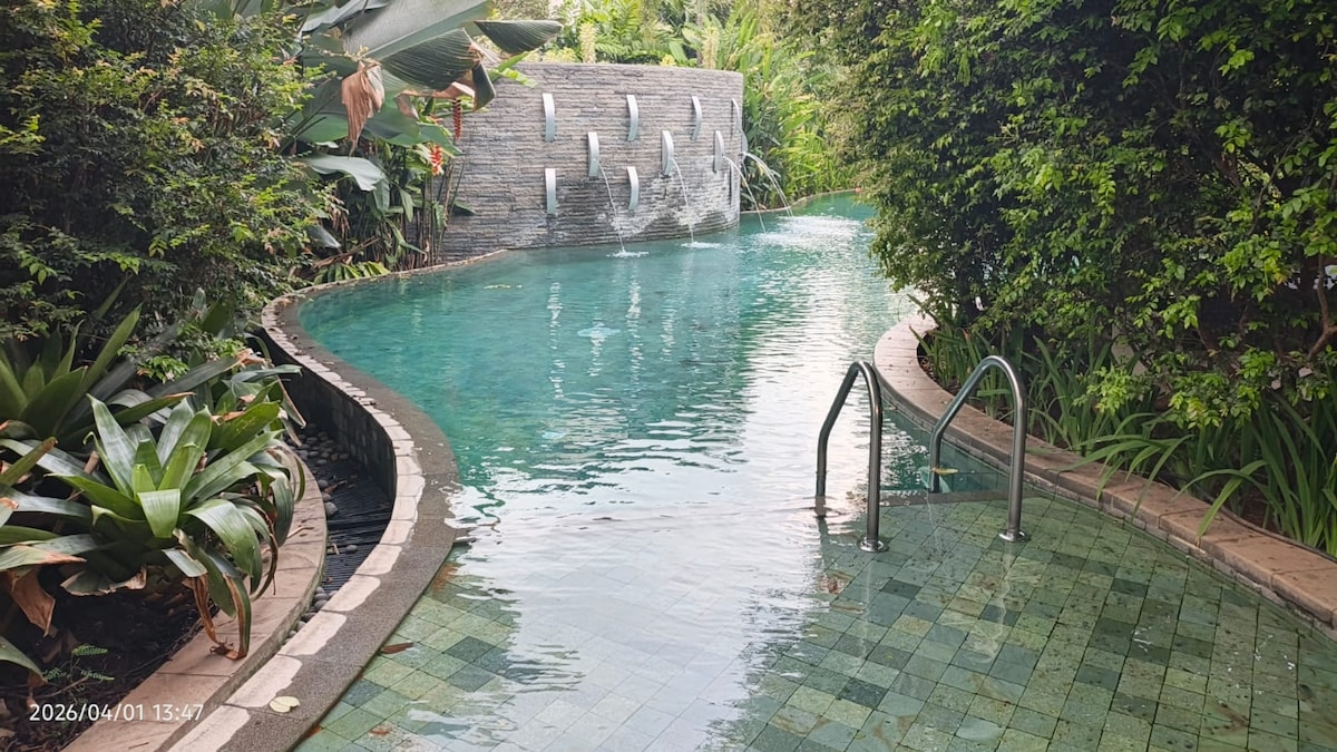 Bersantaiah bersama seluruh keluarga atau pasangan anda di tempat menginap yang tenang di bawah kaki bukit dengan udara yang segar. Town house cantik ini memiliki perlengkapan barbeque dan juga kolam rendam yang akan membuat pengalaman anda semakin mengasyikan di tempat ini. staycation dengan harga murah dan pengalaman yang mengagumkan.