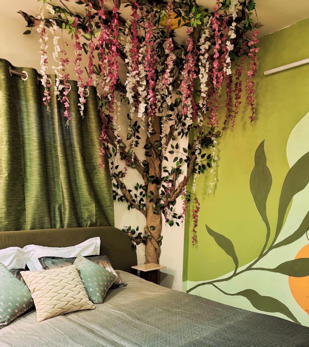 The Bohemian Studio – A Romantic Escape Above the City A cozy 185 sq. ft. fully furnished studio apartment nestled in the serene and green neighborhood of Pashan, Pune. Designed with earthy tones, natural textures, and a warm boho aesthetic, this charming space is perfect for couples, solo travelers, or creatives looking for a peaceful, romantic escape. Though compact, the space is thoughtfully laid out and equipped with everything you need for a comfortable stay.