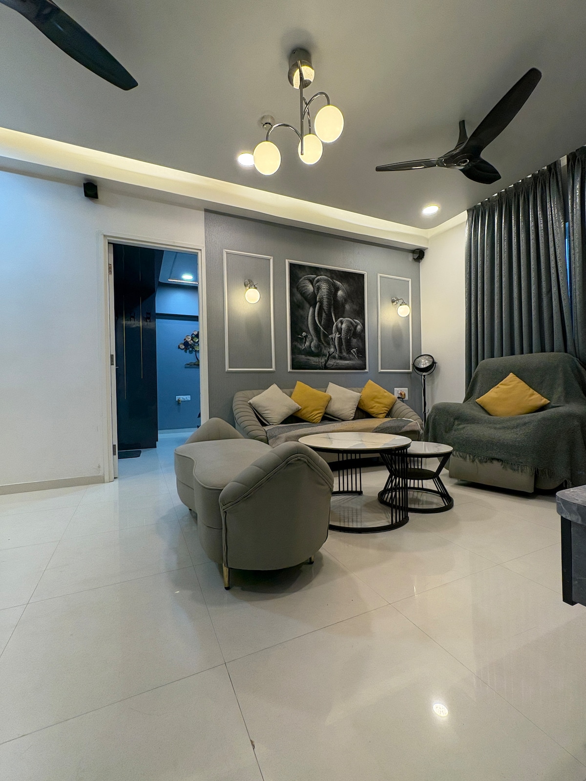 Wake up to stunning sunrise views at The Cozy Cove, a serene retreat in Pune’s Blue Ridge Township. This modern, fully-furnished apartment features a cozy sofa cum bed, a restful bedroom with soft linens, and elegant interiors designed for comfort and style. Enjoy Netflix and chill nights on the smart TV, a serene balcony setup, and a sleek modular kitchen equipped for all your needs. Perfect for couples or small families, it’s a peaceful escape with all the conveniences of home.