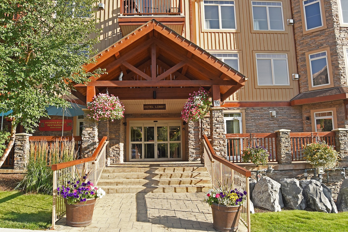 *Parkade closed mid-April–late May; street parking only.* Our beautiful condo is located in one of Canmore's top resorts with year-round access to the hot tub & heated pool. We're a 20-minute walk from downtown Canmore with hiking & biking trails nearby. Looking for a home away from home? Our condo is fully stocked to cook all your meals, with a comfy king bed, patio access & stunning mountain views overlooking the pool/hot tub. Stay a while, you'll love it!