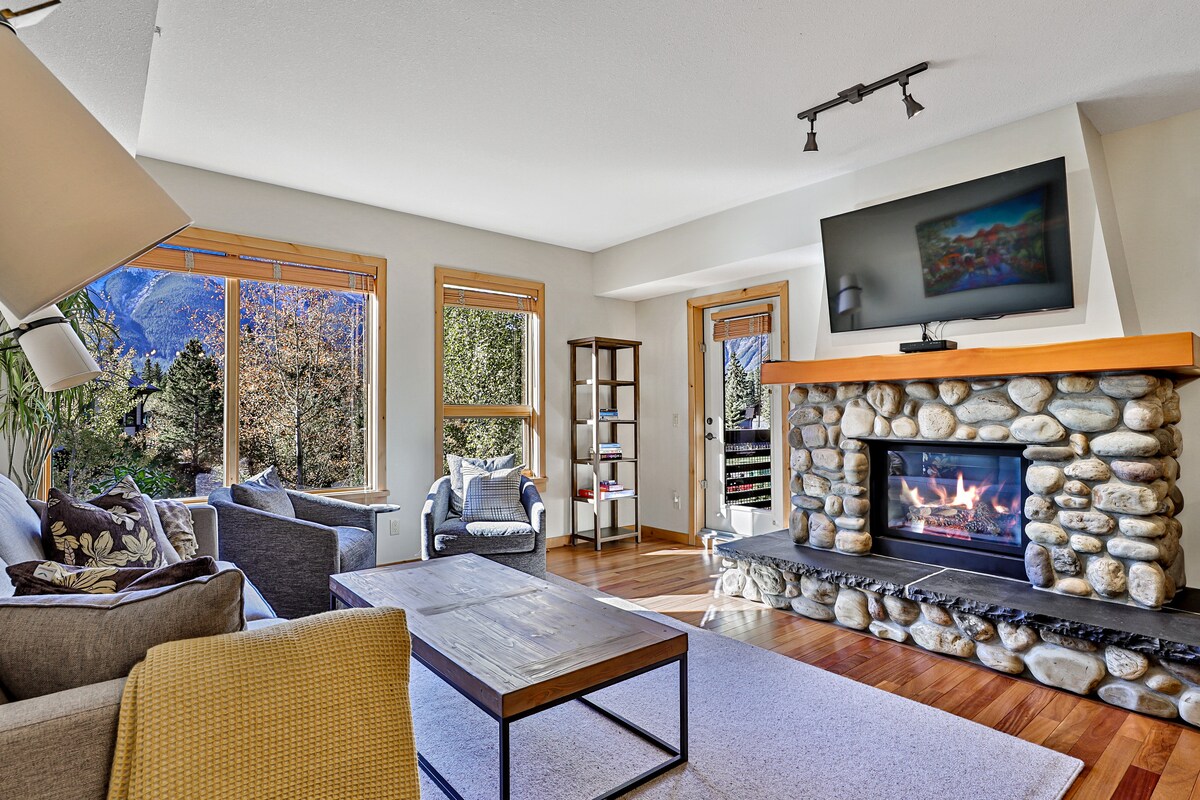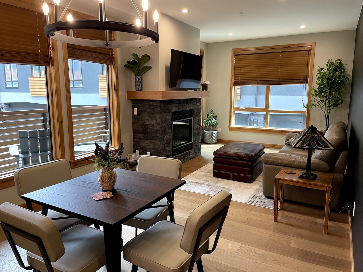 Welcome to your peaceful and stylish Canmore getaway! This luxurious condo is just a 10-minute walk from the town centre, putting shops, restaurants, and trails right at your doorstep. Relax by the cozy stone fireplace, sink into a plush king-sized bed, or host extra guests on the high-quality sofa bed. Enjoy bright, airy living space, fully equipped kitchen, in-suite laundry, complimentary parking, and 1 GB high-speed Wi-Fi. Ideal for adventure or relaxation in the Rockies.