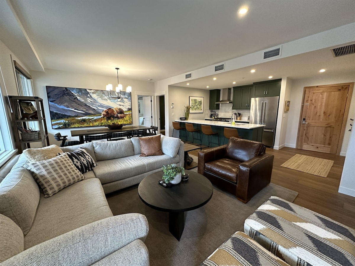 ⭐ Luxury Mountain Condo in Canmore • Sleeps 10–12 • Epic Three Sisters Views • Walk to Downtown & Trails - This modern, spacious, view-filled condo is designed for families, groups, couples, and adventure travelers who want comfort + convenience with unbeatable scenery. If you've ever been to Canmore & Banff you know how rare two dedicated underground parking stall are....not to mention EV chargers are also available in underground parkade!