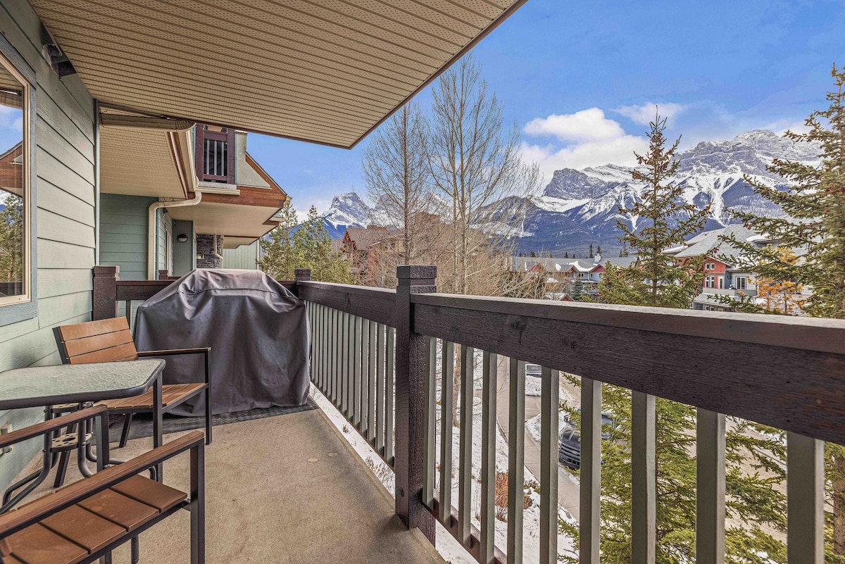 Gorgeous view of the Rockies! Side-by-side condos double the fun for multi-family vacays!! Each fully self-contained condo has 2 bedrooms/2 baths w/ leather European-style queen Sofabeds. Easily fits up to 6 guests per unit for a maximum of 12 guests total. Sit on the balconies and bbq w/the 2 Gas Grills while enjoying stunning views of the mountains. Or make a meal in each of the 2 well-stocked kitchens. Enjoy outdoor heated pool and 3 hot tubs year round!! Just minutes away from Banff.