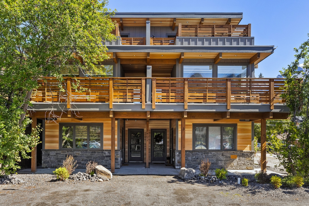 Welcome to your 2,650 sqft spacious vacation home in The Mercer, Canmore! This bright and airy corner unit is filled with natural light. Enjoy stunning mountain views from every room—including all balconies and even the bathrooms! 😊 Each bedroom features its own private ensuite bathroom with cozy in-floor heating. ⭐️ Hosted by an experienced and responsive Superhost. 🚗 Two private parking spots. ✨ Check out our 5-star reviews from guests around the world!