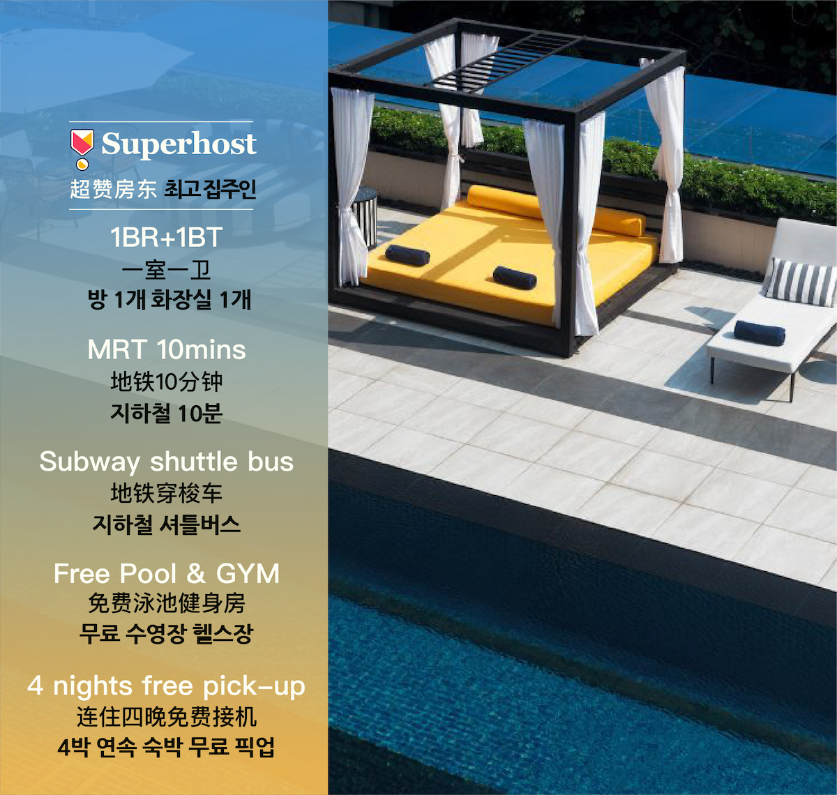 This is not a shared apartment. It is a 1 bedroom, 1 living room, 1 bathroom and 1 balcony apartment( completely private). Regarding the earthquake on March 28, 2025, 2 swimming pools and 2 gyms have returned to normal now in the building! Open from 6am to 10pm.