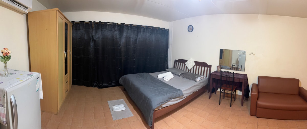 1 ห้องใหญ่ ห้องรับแขกและห้องนอน มีพื้นที่ใช้สอย วิวสวย บรรยากาศดีมาก เหมาะกับการพักผ่อนหรือมาสัมนาประชุม สะดวกกับที่จอดรถ ขนาดห้องกว้าง 34 ตรม. สิ่งอำนวยความสะดวกครบครัน ตู้เย็น เครื่องทำน้ำอุ่น กาน้ำร้อน ไมโครเวฟ ทีวี ห้องนั่งเล่น แอร์ 2 ตัว You have swimming pool, close to 7-eleven, Don Mueang International Airport, so many shops! as medical clinic, Mali Market for some REAL thai shopping experience, Impact Arena for big events & trades shows, good coffee shop; Bon A Blissx, Central Mall, and koh kret island for pottery class! Free wifi