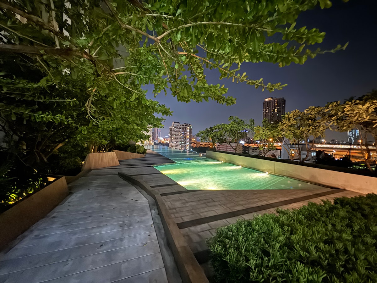 曼谷中心/河景/暹罗天地/BTS/icon Siam /一室一厅/空中泳池/7-11/水上市集