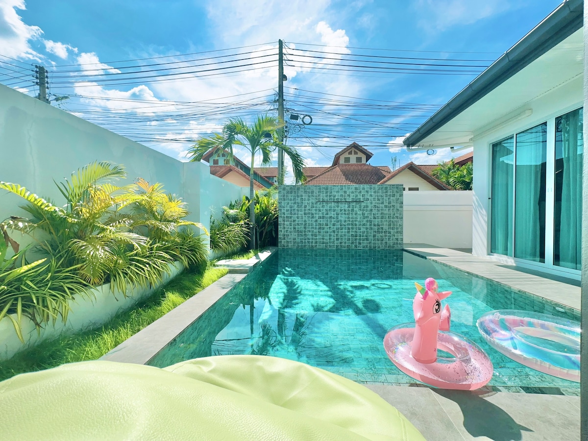 别墅坐落于宁静高端住宅社区,这处占地广阔的4卧度假别墅是您理想中的热带天堂。别墅拥有私人泳池和花园,带来十足私密性。最大亮点是主卧室跟客厅推门都可直接跃入清凉泳池。 步行800米即可抵达美丽中天海滩,别墅花园配了沙发椅跟烧烤架,室内外生活空间宽敞,完美适合家庭聚会或朋友结伴度假。 社区周边环境静谧,无论是晨泳唤醒身心,还是在花园中悠闲阅读,这里都能让您彻底放松,尽享纯粹假期。 现代化设施齐全,包括全配套厨房、高速WiFi和贴心管家服务,为您提供无忧的奢华度假体验。