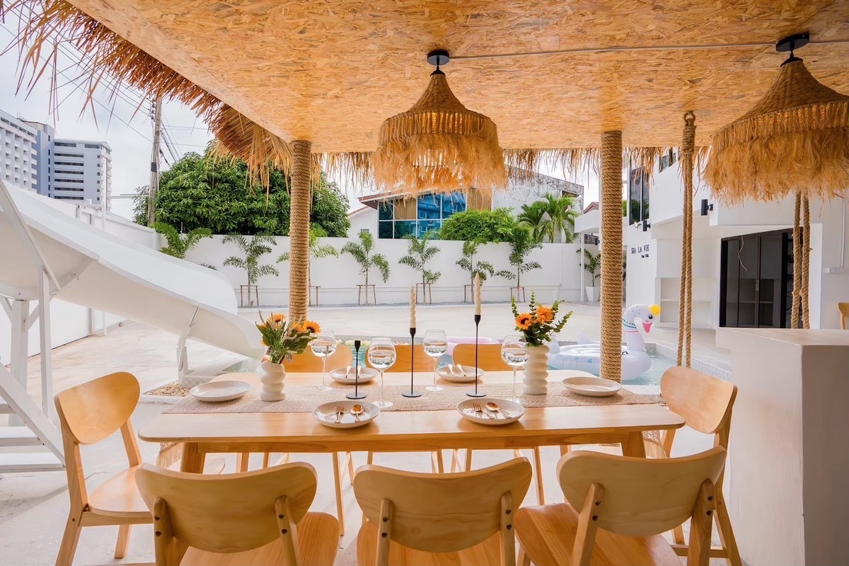 Your Noble Pool Villa Pattaya พูลวิลล่าหรูมีระดับ ใกล้ทะเล ที่รวมทุกความสนุกไว้ในที่เดียว! ปาร์ตี้ริมสระ / เตาปิ้งย่าง / คาราโอเกะจัดเต็ม แค่ 2 นาทีถึงทะเล มุมถ่ายรูปสุดปังทุกมุม จองไว้ก่อน จะได้ไม่ต้องรอใครมาอิจฉา
