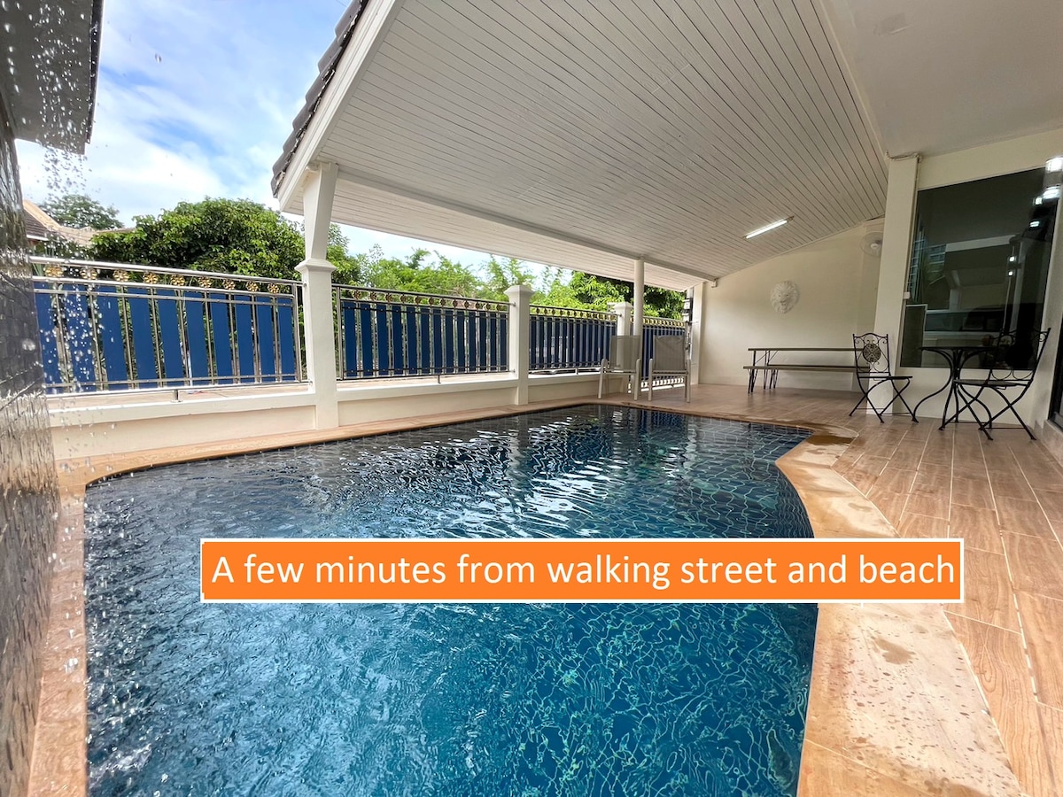 在这座位于市中心4 卧5 卫的私人泳池别墅的房源里, 会让您享受时尚温馨的住宿体验。 周边7-11/Mini BigC超市,餐馆、咖啡店林立,步行3-5分钟即到,生活超级便利, 在此可尝遍泰式美食。 开车10分钟左右直达芭堤雅风月步行街, 海滨路及沙滩;前往中央商场及terminal 21商场非常便利,住在这里,将会给您带来愉快的旅行体验!通过Grab应用程序(Bolt )√轻松搭乘出租车 设施和便利设施: -私人游泳池 -烧烤炉 -全功能厨房 -免费水、电、高速无线网络 -毛巾浴巾 -洗漱用品(洗手液和洗发水、沐浴露) -每个房间都有吹风机 -每个房间都有smart TV - 保险柜 -电熨斗 -洗衣机 客厅有75英寸4K超高清智能电视 -私人停车位 免费饮用水、咖啡、茶 免费日常清洁、每2 天更换一次毛巾浴巾 我保证提供绝对私密的住宿体验。无需与他人共用,无任何干扰。
