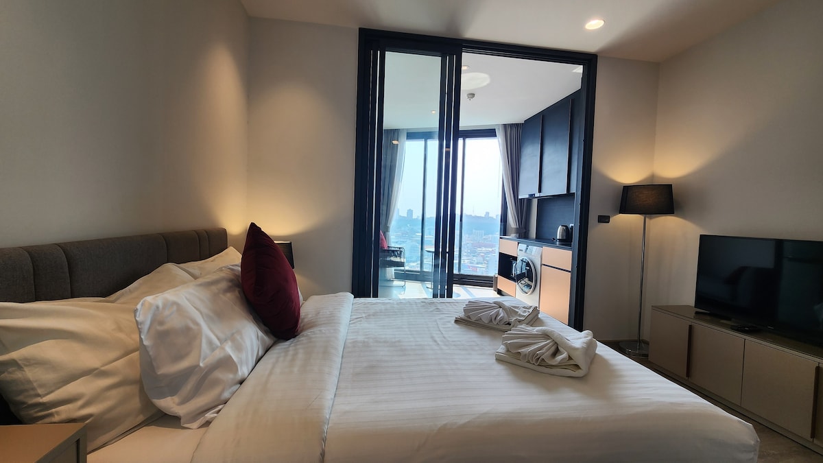 40floor 26 Sq.m. studio (king bed), with great seaview Our room is in Unixx Condominium. - 2min walk from busy streets for tasty local food - 7min walk from the major pier&gocart track. - 10 min to Walking street. - 20 min walk to Beach - 2 Swimming pools/Sauna/Gym - Great View on sky garden - 31 km to U-Tapao Rayong-Pattaya International Airport.