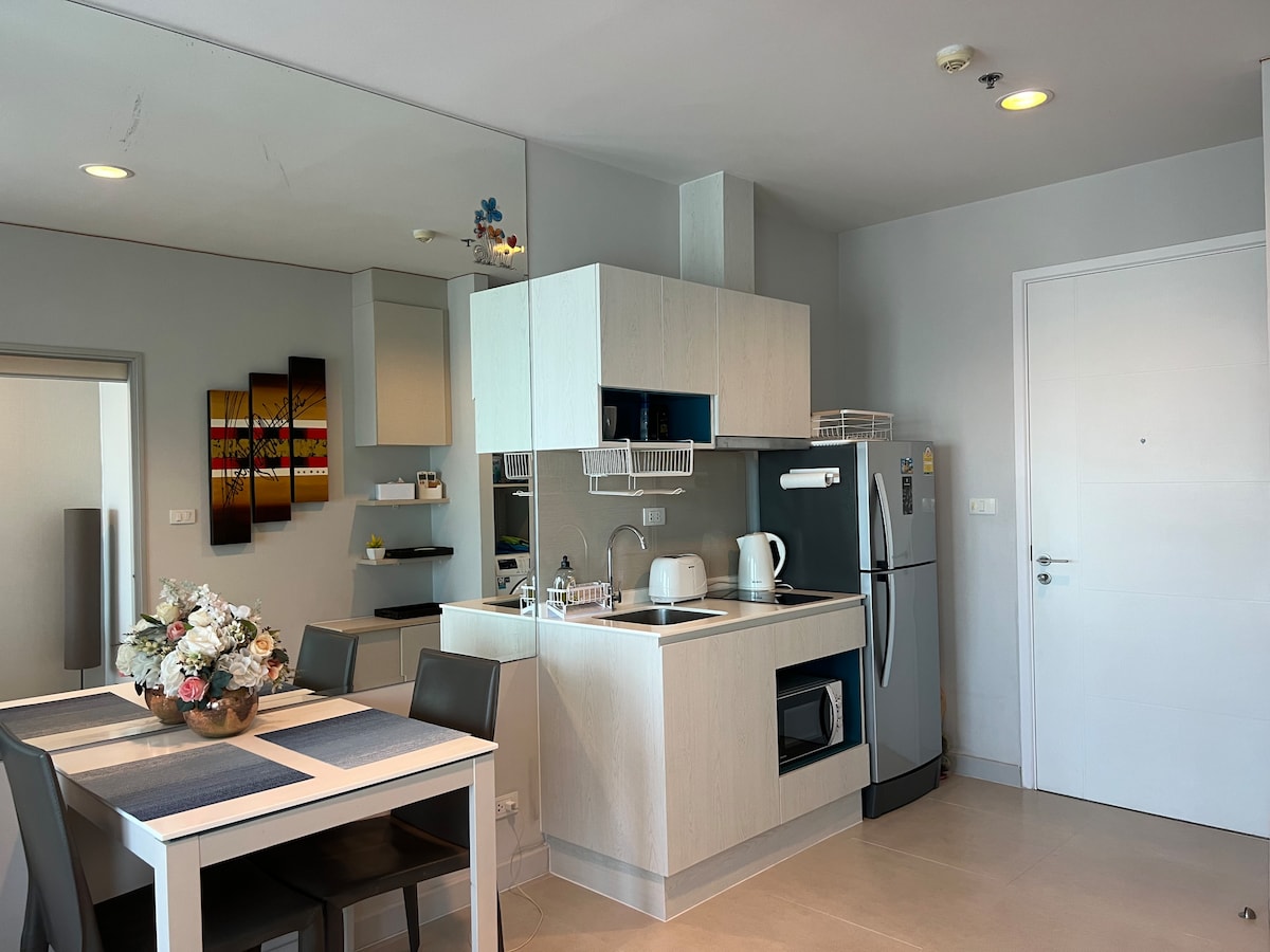 Location: -Near Jomtien Beach:*400 meters to the beach. -Market Russia Night Food:*200 meters away. - Walking Street: *10-minute drive. Amenities: -Swimming Pool & Fitness Center:*Luxurious facilities available. -Large Car Park:*Ample parking space. -High-Speed WiFi:*300 Mbps internet speed. -Smart TV 4K:*Watch YouTube and Netflix. -Entertainment:*3 TVs in the apartment. -Bedrooms and Bathrooms:*2 bedrooms and 1 bathroom. Experience luxury and convenience at Dusit Grand View Apartment.