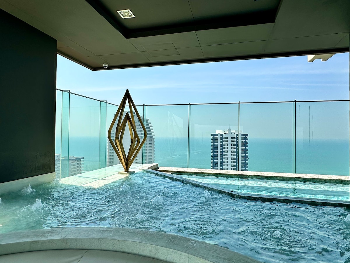 The base公寓,市中心,27楼,房间可看海景,城市夜景和落日夕阳,超大阳台,无边泳池,靠近海滩