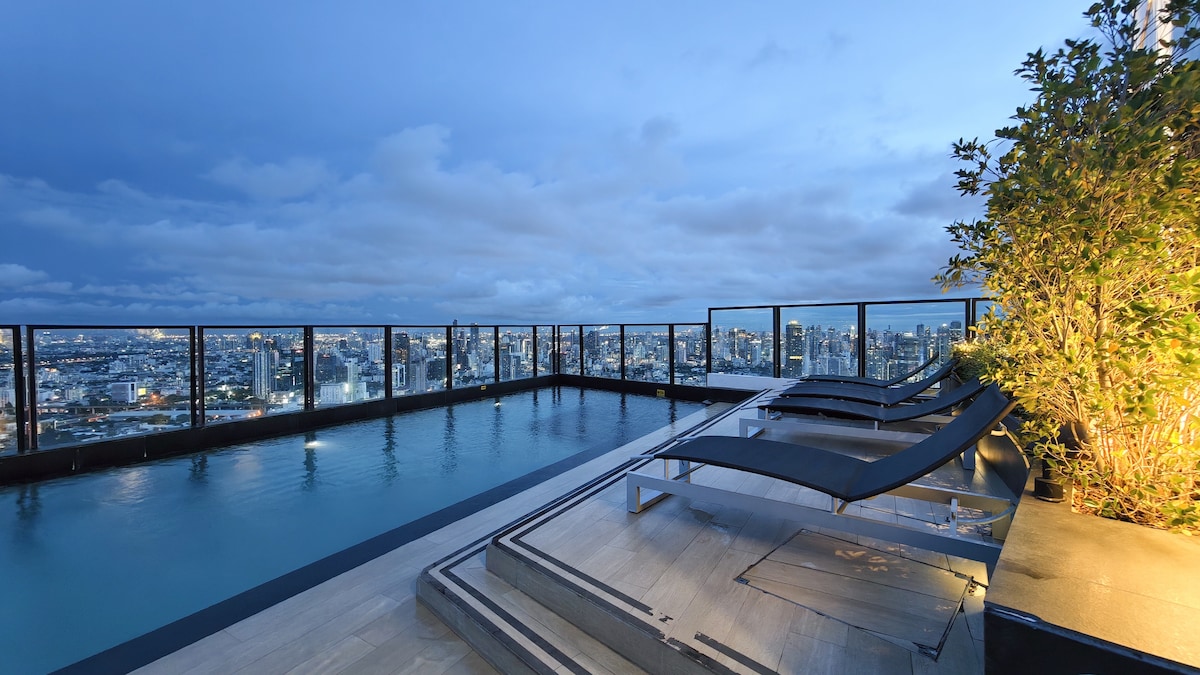Rama9 35平一室带阳台LOFT7/住3人/屋顶泳池/近RCA/近火车夜市/近tonglor