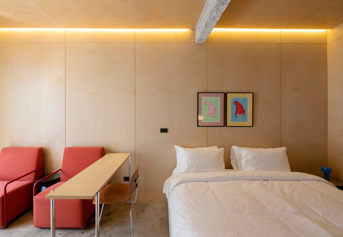 Stupid Stay Room No. 2-The playful mid-century design Unique Design Inside: This room is 1 of 6 uniquely designed spaces within "Stupid Stay," a designer casa connecting guests with Bangkok's art & design community. Mingle with locals & experience creative energy! Enjoy the convenience of nearby ICONSIAM & BTS Charoennakorn train station (just a 7-minute stroll away). Plus, you'll get to experience the real Bangkok scene with yummy street food and awesome sights like Wat Arun around the area.