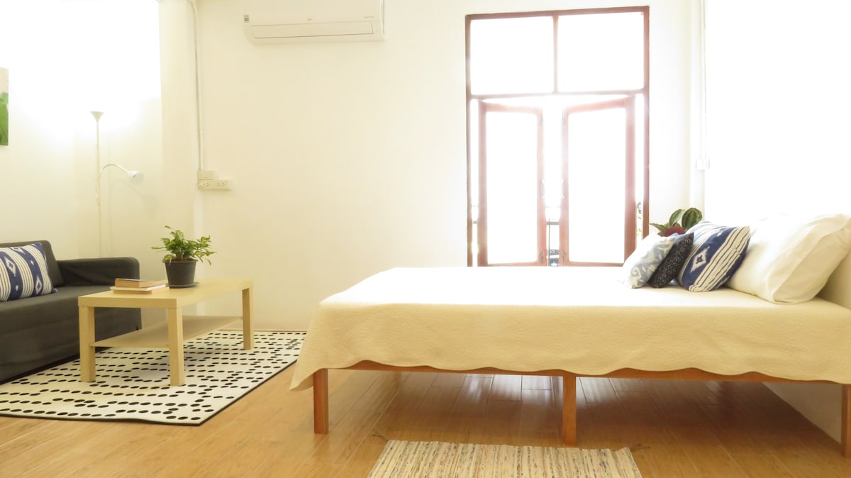 This centrally located studio apartment provides a warm, inviting atmosphere in a stylish Bangkok's mid-century setting—perfect for travelers seeking a cozy home away from home. Experience comfort and charm in the heart of the city. Be sure to check out our other listings at the same location on our profile!