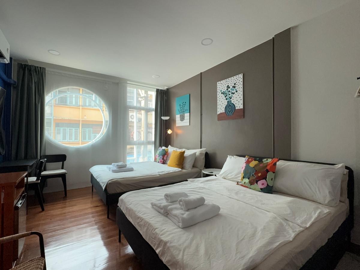 A compact and budget room for 4 on the 4th fl (*NO LIFT*) of a townhouse located in the HEART OF BANGKOK. Only 400 meters to BTS Phayathai and Ratchathewi, getting around is super easy. Surrounded by local shops, restaurants and convenient stores, you will never have to worry about food. Wanna go shopping? Pratunam market, Siam Paragon, Siam Square, MBK Center, Centralworld and Big C Ratchadamri are only 1-2 BTS stops away or 10-15 mins leisurely walk, what a shopaholic's dream comes true.