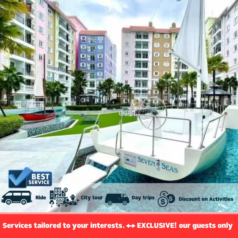 This is perfect place for holiday, you can walk to beach directly, enjoy large water park and many facilities. Room - 1 king size bed (6 ft.) - built in kitchen with hood & electronic cooker - refrigerator, microwave, kettle Facilities - Swimming pools with water park style with 2 sliders - artificial wave (Weekend only) - Indoor therapy pools - Huge Gym, Yoga room, Boxing room - Game room - Kids club - Beach access