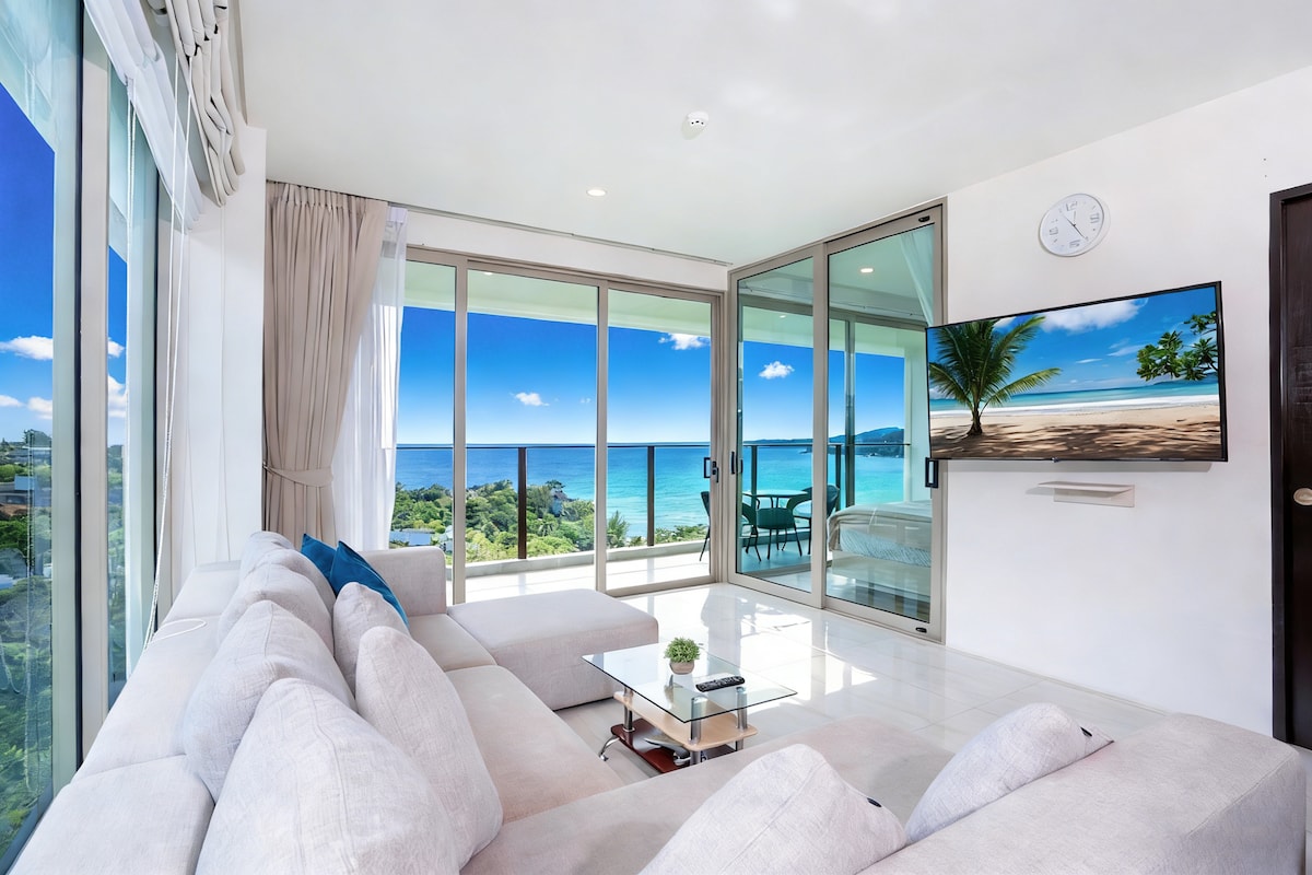 俯瞰Kamala海滩|无敌海景两卧公寓|顶楼无边私人泳池 |绝美日落|步行400米到海滩| A82