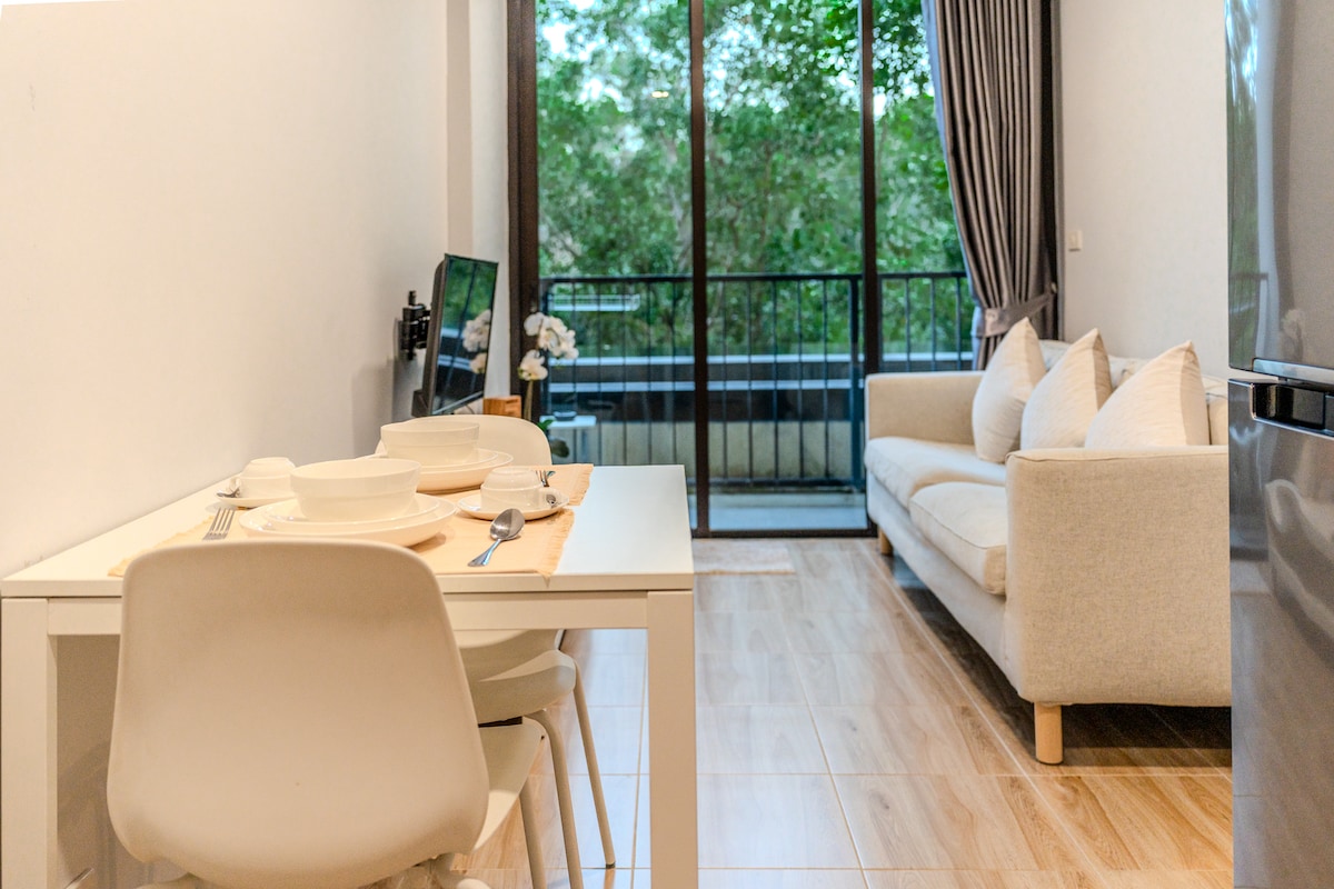 Our cozy 1-bedroom apartment, on the 7th floor of Diamond Resort, allows you to rest peacefully after a day of adventure. Just a leisurely 10-minute walk from Bang Tao Beach, you can soak up the sun and enjoy the crystal-clear waters whenever you desire. Relax by the 50-meter pool or discover the island's best restaurants and boutiques with Boat Avenue and Porto de Phuket just minutes away. Your unforgettable Phuket getaway starts here—book your stay today! 🌴🌊✨