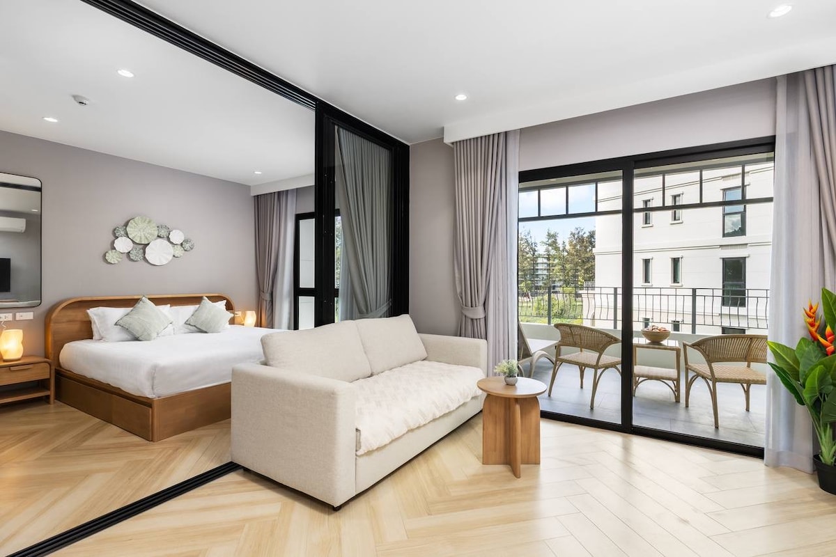 A 28 sqm one-bedroom suite, perfect for 1-2 guests, featuring: -Fully equipped kitchen -Private bathroom -Small balcony -Smart TV -Private high-speed WiFi -Air-conditioner -Washing machine -Queen Size bed -2 swimming pools -Gym -Co-working space -Outdoor shower area - No smoking in the room. - If you have a car or motorcycle, please inform us of the type of vehicle in advance.