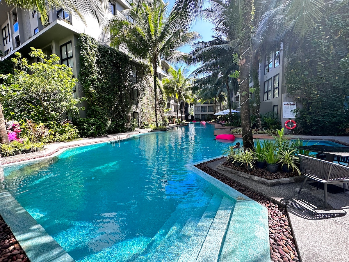 Kick back and relax in this calm, stylish space designed for comfort and luxury. This modern and contemporary condo features a spacious layout with elegant interiors, perfect for a tropical escape. Surrounded by lush greenery, the residence offers a tranquil atmosphere paired with premium services and 5-star facilities—all just a short walk from the stunning Bangtao Beach.