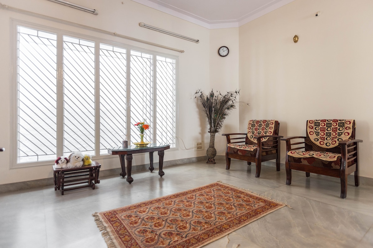 Independent, fully furnished, spic & span, vastu-complaint, spacious 1000 sqft house(2bhk) on 1st flr of standalone building in RT Nagar. Proximity to Manyata Tech Park, Orion Mall, IISC. Classy marble flooring, tasteful interiors and a sense of calm makes it a Zen Haven for your stay! Owners non intrusive, yet helpful. Yum, home cooked meals an option at extras. Great for couples, families, work trips & students. Discounts for long term stays only. Be assured of a pleasant stay when you book!