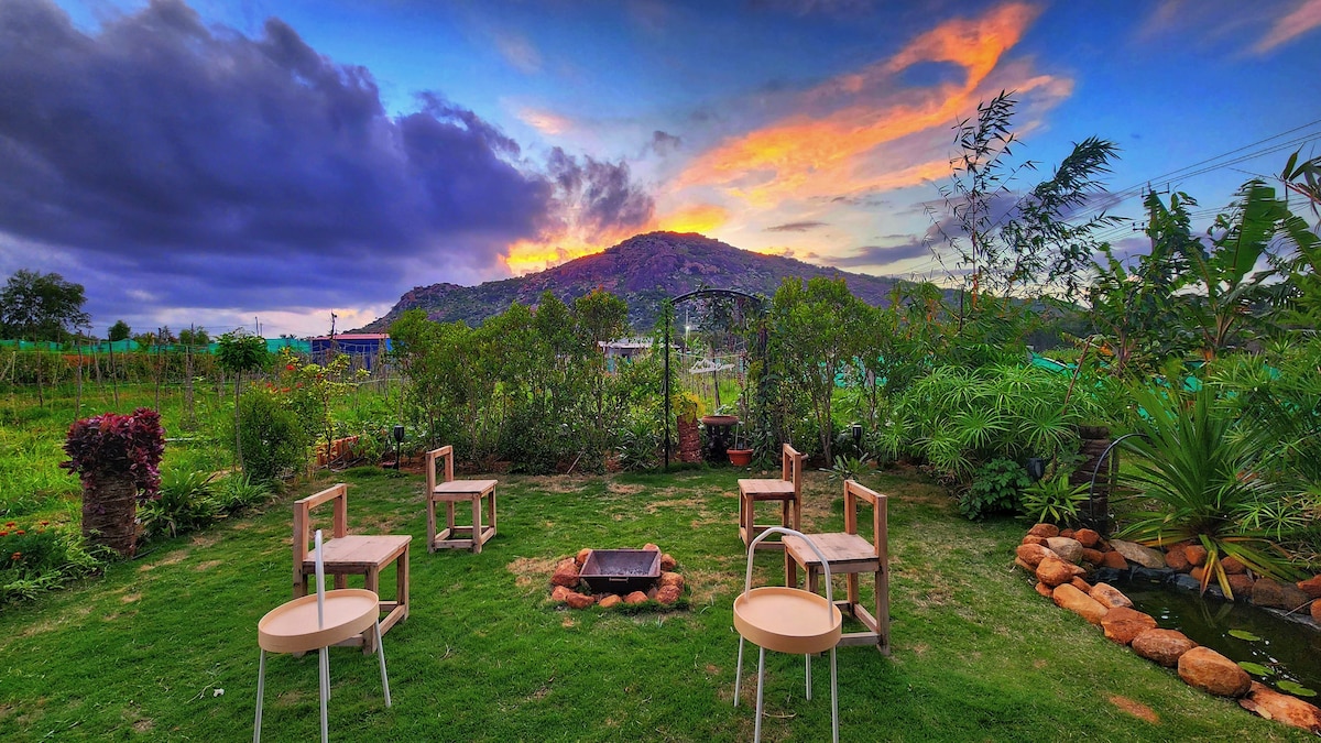 Enjoy this rustic organic farm setting with thoughtfully made facilities in lap of nature. The farm has majestic Hulukadi betta, literally next door and can spend hours and hours just gazing at the hills. We have been taking lot of interest in developing agriculture and Hospitality. So that, those visiting the camp and farm will not only get to see majestic views but also a nice place to stay, eat local food and even try their hand to learn nuances of farming.
