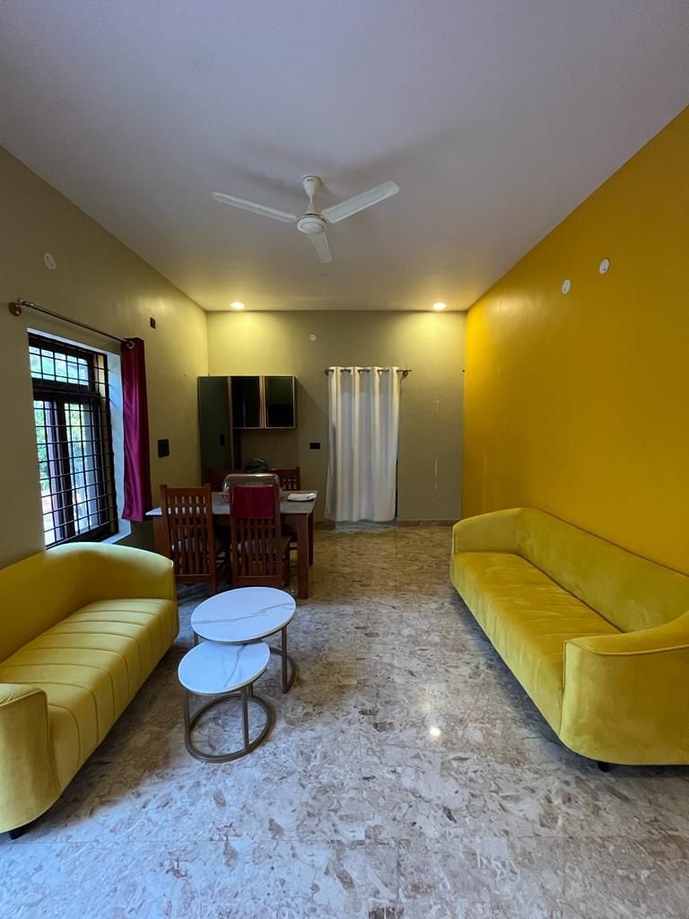 This independent studio is located on ground floor, it has private attached bathroom and kitchenette. The space opens out into a large garden, with mango and coconut trees. This property is located 1 km from the bus stop, supermarket and restaurants! It is part of a larger farm property, which has a few more Airbnb listings. AC available for extra charge: ₹300