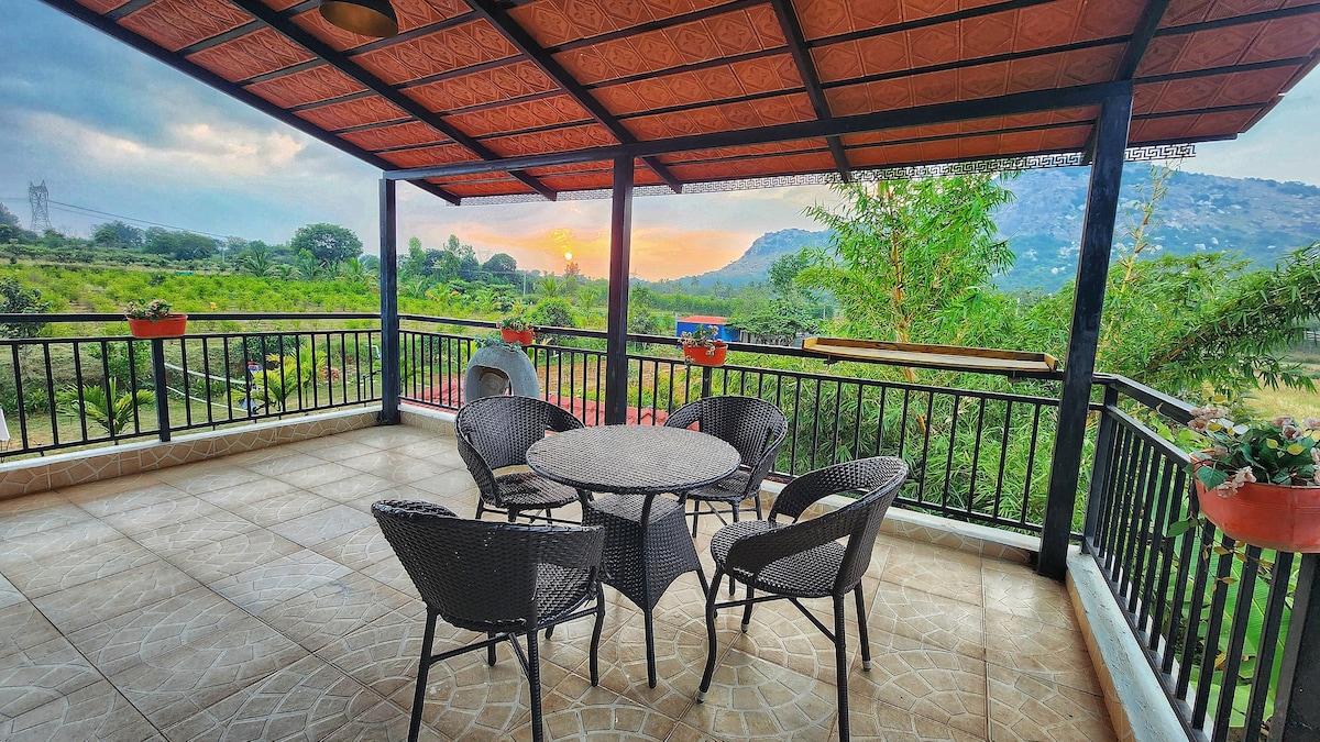 Wake up to the breathtaking views of Nandi Hills from every room of this secluded farmhouse, with sunroofs, enjoy expansive shared balconies & indulge in luxury with 3 large bedrooms. Spot peacocks amidst nature's beauty & explore the nearby lake without any disturbances. The airport is easily accessible from our property, it is a short 40 minutes from either of the Bangalore airport terminals & we have Uber access to our property. This listing is for the first floor, not the Entire Villa.