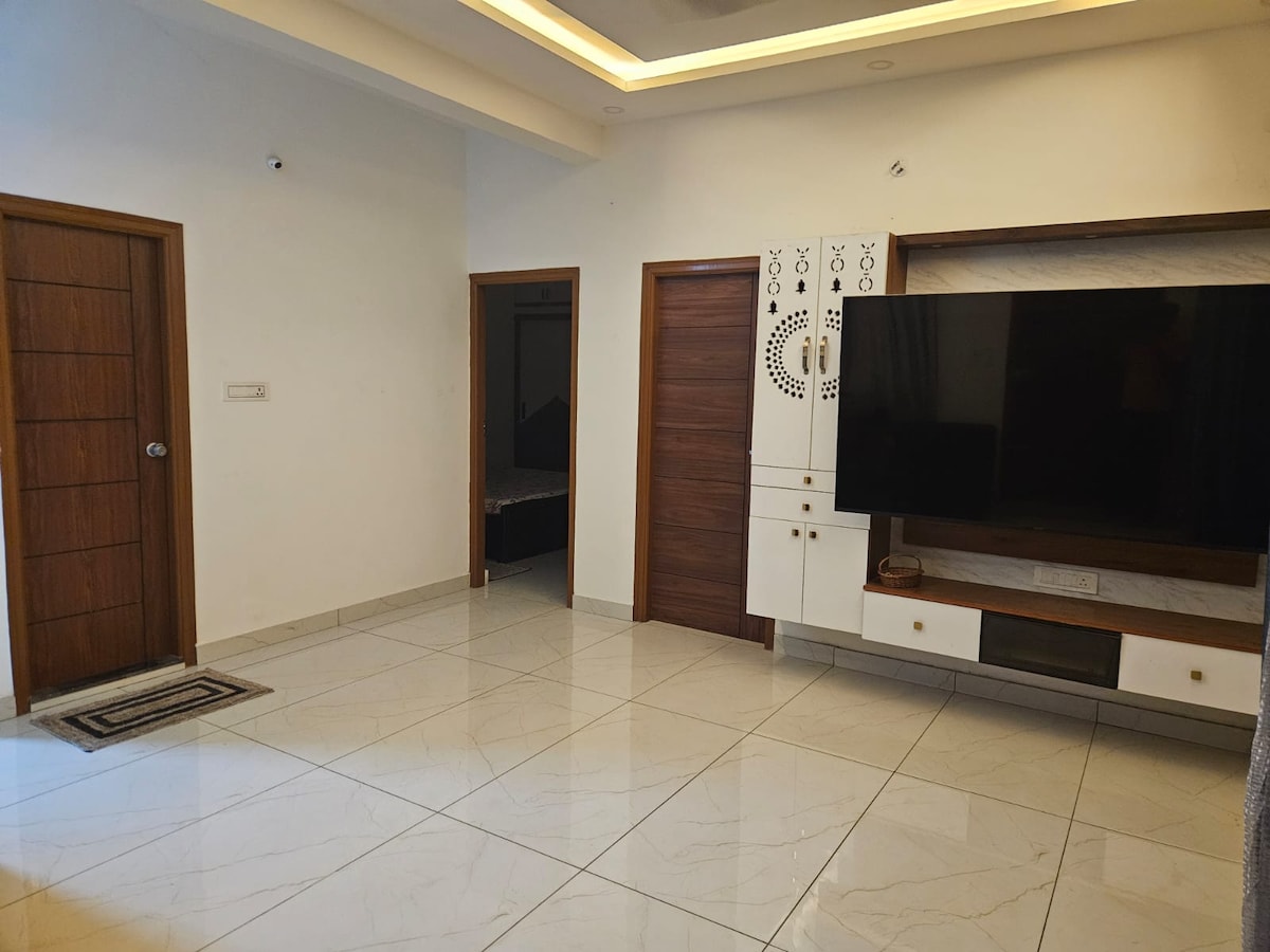 Welcome to our brand new, spacious 2-BHK apartment, ideal for families and couples seeking comfort and convenience. The bedrooms have queen size beds with orthopedic mattresses and AC for a restful night's sleep. Relax in the large living room with a 43-inch Smart TV, lightning-fast WiFi and a dedicated dining area. Comes with two super clean bathrooms stocked with bath essentials. The fully equipped kitchen includes high-quality appliances and crockery for your culinary adventures.