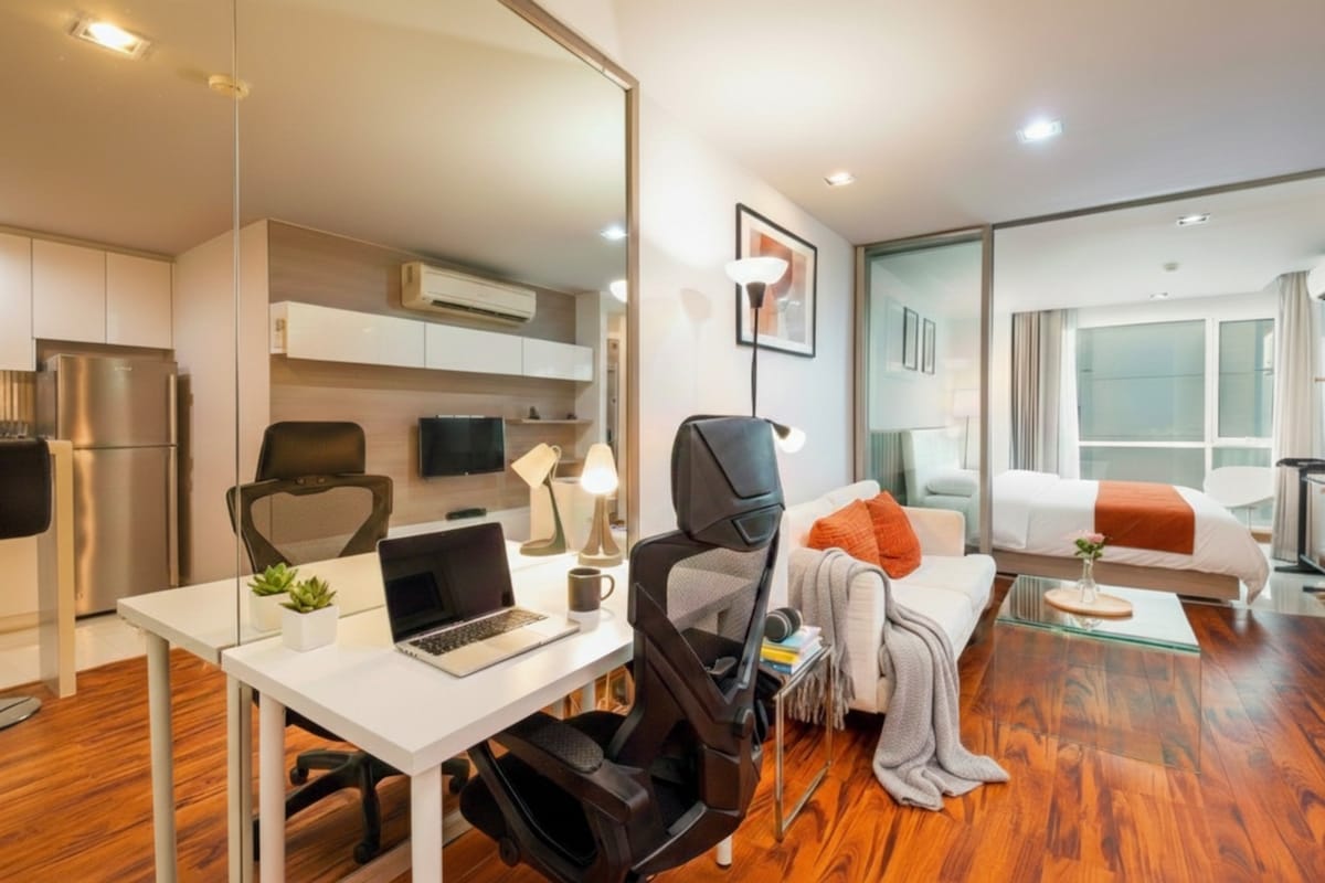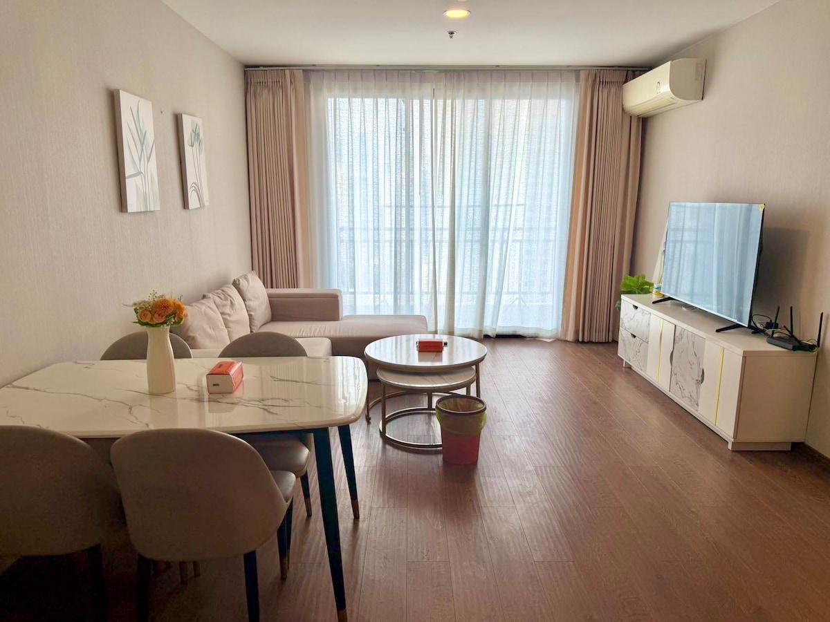 Chic City Hideaway Steps from BTS Phra Khanong Enjoy modern comfort in this bright one-bedroom condo just a short walk from BTS Phra Khanong — perfectly positioned for exploring Sukhumvit or working from the city. • Light-filled living space with floor-to-ceiling windows • Plush queen bed with blackout curtains for deep, restful sleep • Lightning-fast Wi-Fi and a 55″ smart TV (Netflix-ready) — ideal for work or winding down