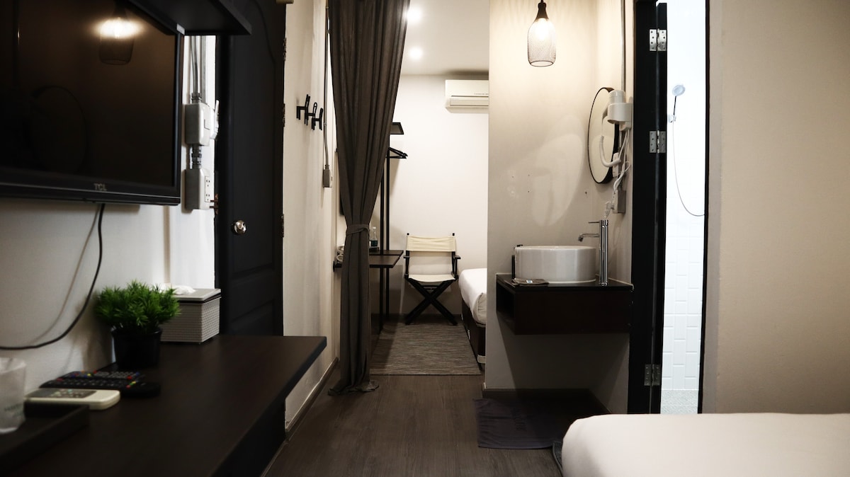 Staying in this modern design room with a big bathtub in Old Town Bangkok offers a luxurious retreat with a perfect balance of contemporary comfort and cultural richness. The combination of sleek design, high-end amenities, and a prime location makes it an ideal choice for travelers seeking both relaxation and an authentic experience of Bangkok's historic charm. Enjoy a stylish experience at this centrally-located place.