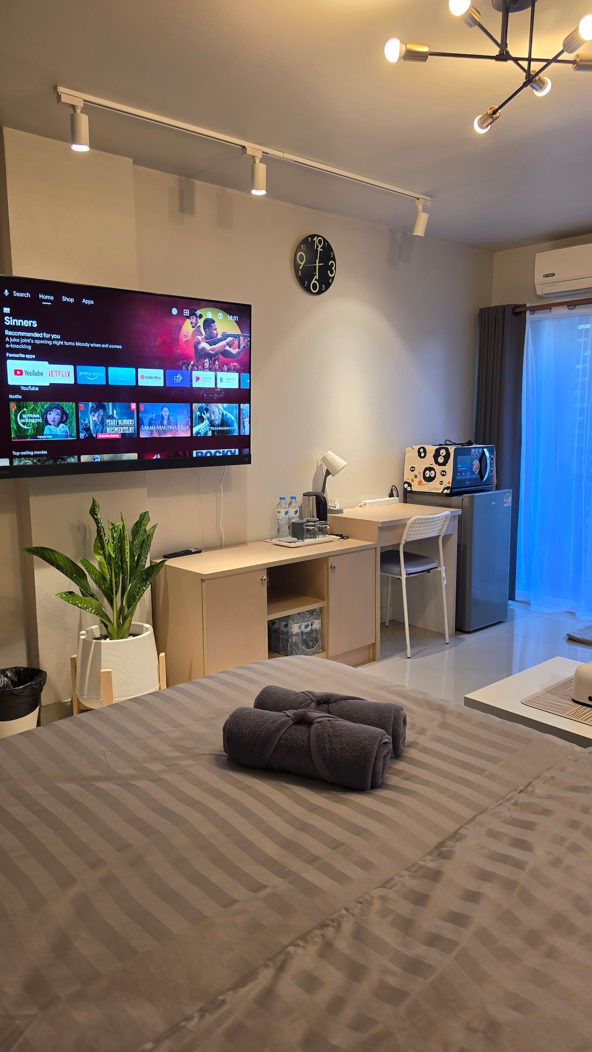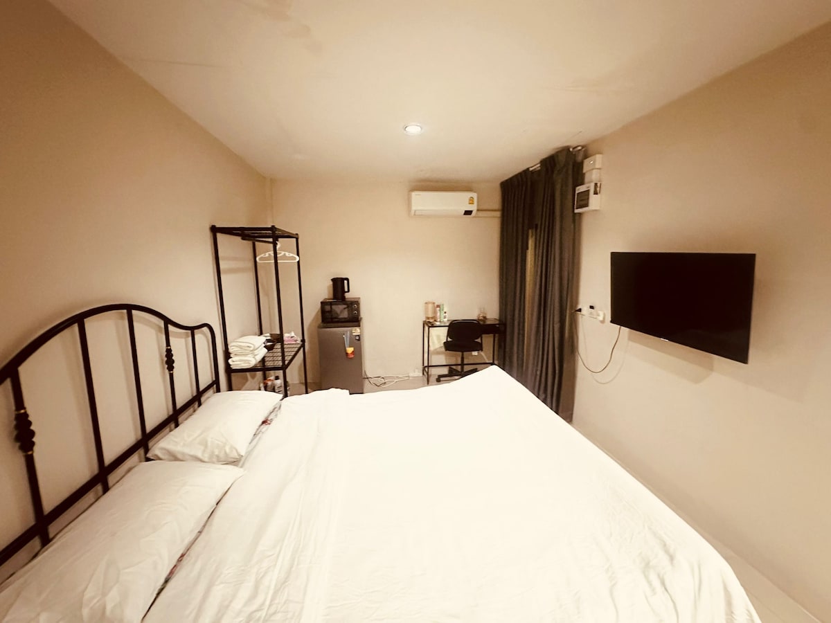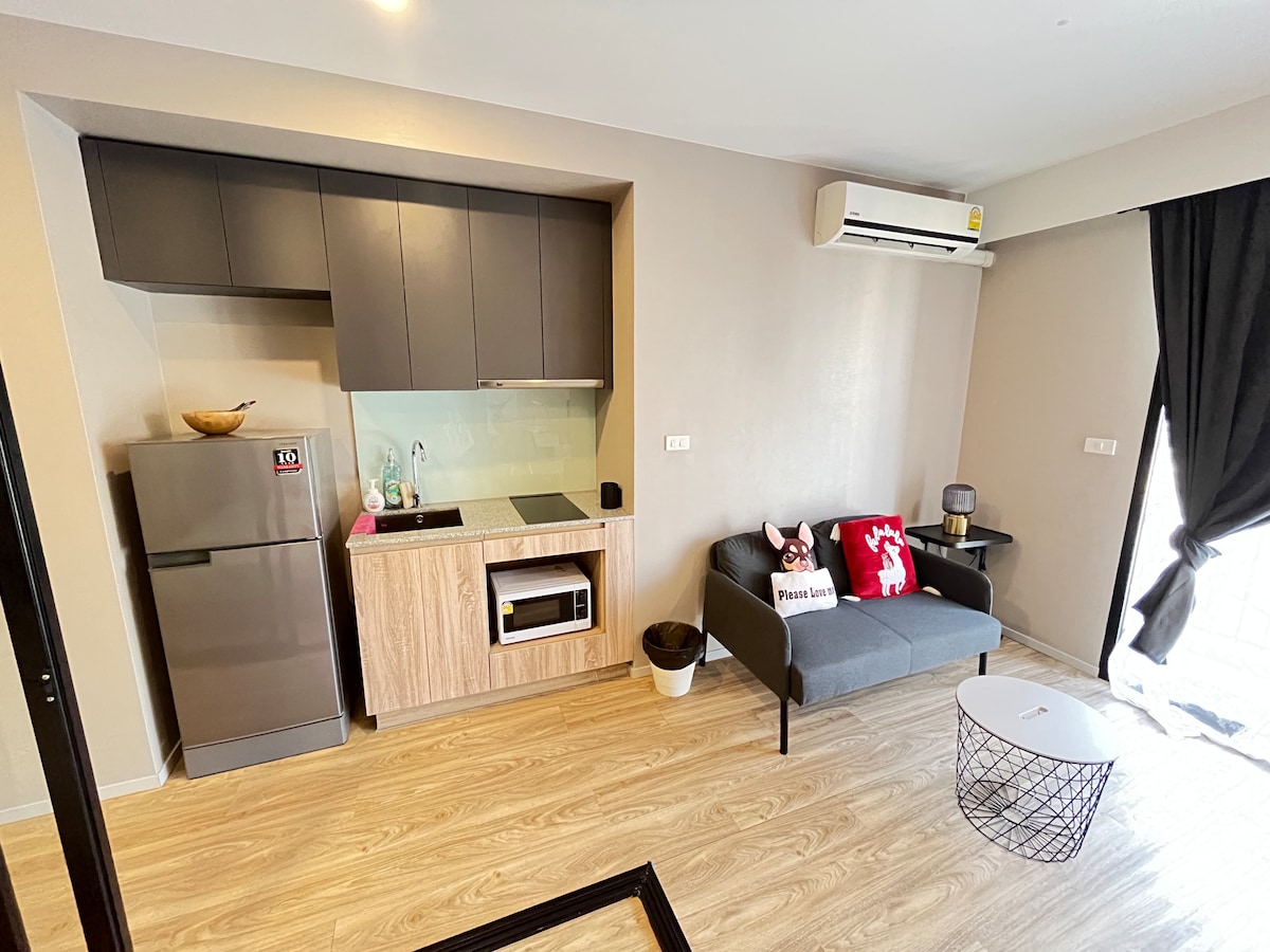 1 ห้องใหญ่ ห้องรับแขกและห้องนอน มีพื้นที่ใช้สอย วิวสวย บรรยากาศดีมาก เหมาะกับการพักผ่อนหรือมาสัมนาประชุม สะดวกกับที่จอดรถ ขนาดห้องกว้าง 34 ตรม. สิ่งอำนวยความสะดวกครบครัน ตู้เย็น เครื่องทำน้ำอุ่น กาน้ำร้อน ไมโครเวฟ ทีวี ห้องนั่งเล่น แอร์ 2 ตัว You have swimming pool, close to 7-eleven, Don Mueang International Airport, so many shops! as medical clinic, Mali Market for some REAL thai shopping experience, Impact Arena for big events & trades shows, good coffee shop; Bon A Blissx, Central Mall, and koh kret island for pottery class! Free wifi
