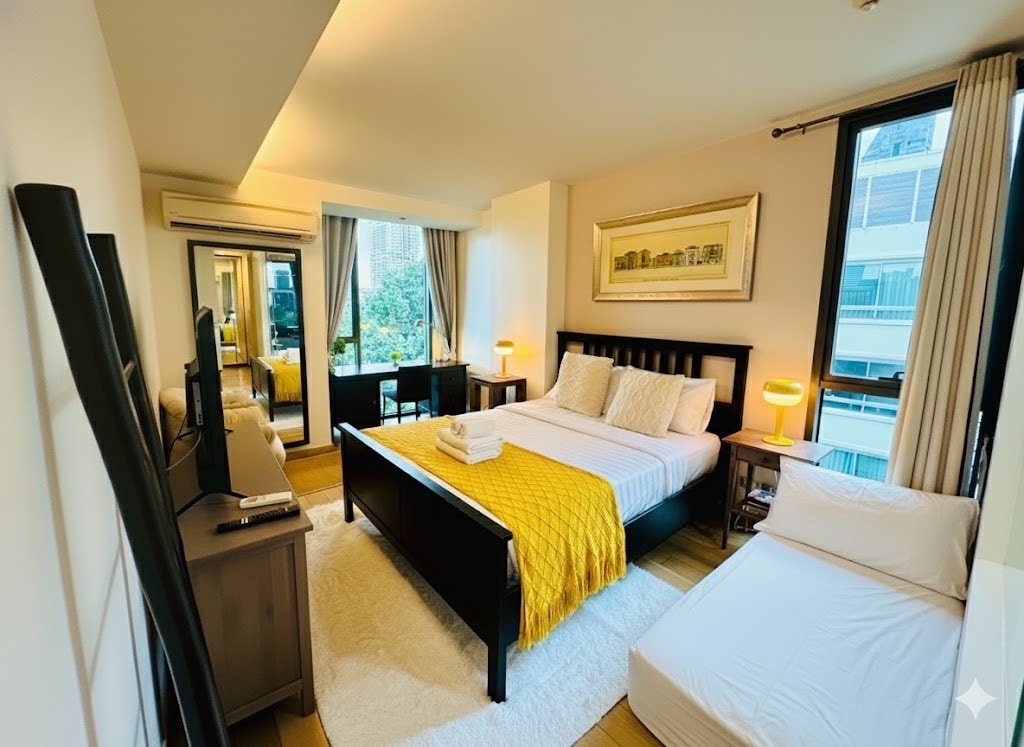 Welcome to our cozy home in the heart of Asoke, one of Bangkok’s most vibrant neighborhoods. With both BTS and MRT just around the corner, getting anywhere in the city is quick and easy. The apartment is bright and spacious, featuring two bedrooms, a living room, a pantry, and a private bathroom. Please note that our building is a small townhouse without an elevator, and the unit is on the 3rd floor, accessible by stairs.