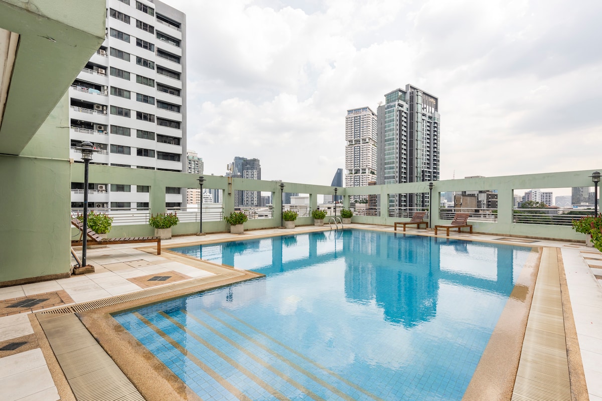 曼谷市中心宁静泳池,健身房,1分钟到轻轨站