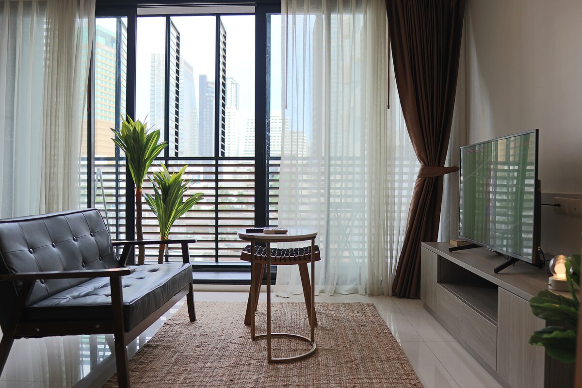 Cozy and Spacious 1BR Asok near Nana +sky pool!