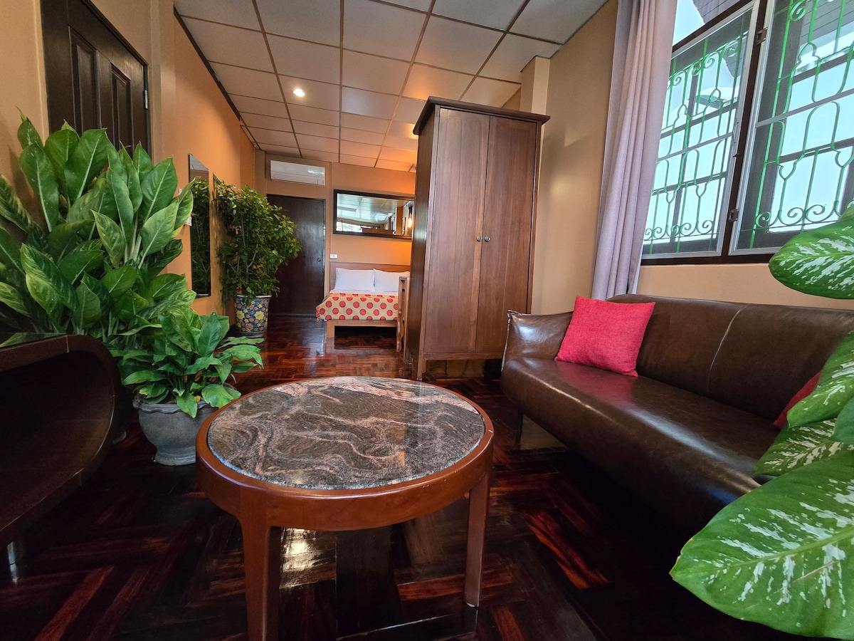 Escape to a vintage tropical homestay in our 1960s villa! Your private retreat features a cozy bedroom, ensuite bathroom & kitchenette, nestled in a lush garden with mango and jackfruit trees. Restored teakwood floors and retro details blend with modern comforts. Just 6 mins to MRT Lumpini and One Bangkok — perfect for exploring Bangkok while living the slow, leafy life of old money Sathorn. 🌿🏡 #OldBangkokVibe