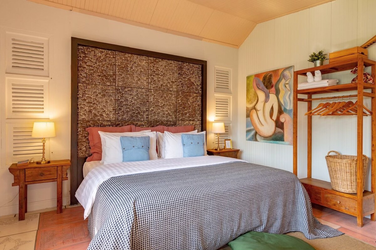 Discover this delightful hidden gem set in a revived 19th century mansion. The room features a private en suite bathroom, unique artwork, ornate details throughout the home, and access to shared spaces including a courtyard. quiet.