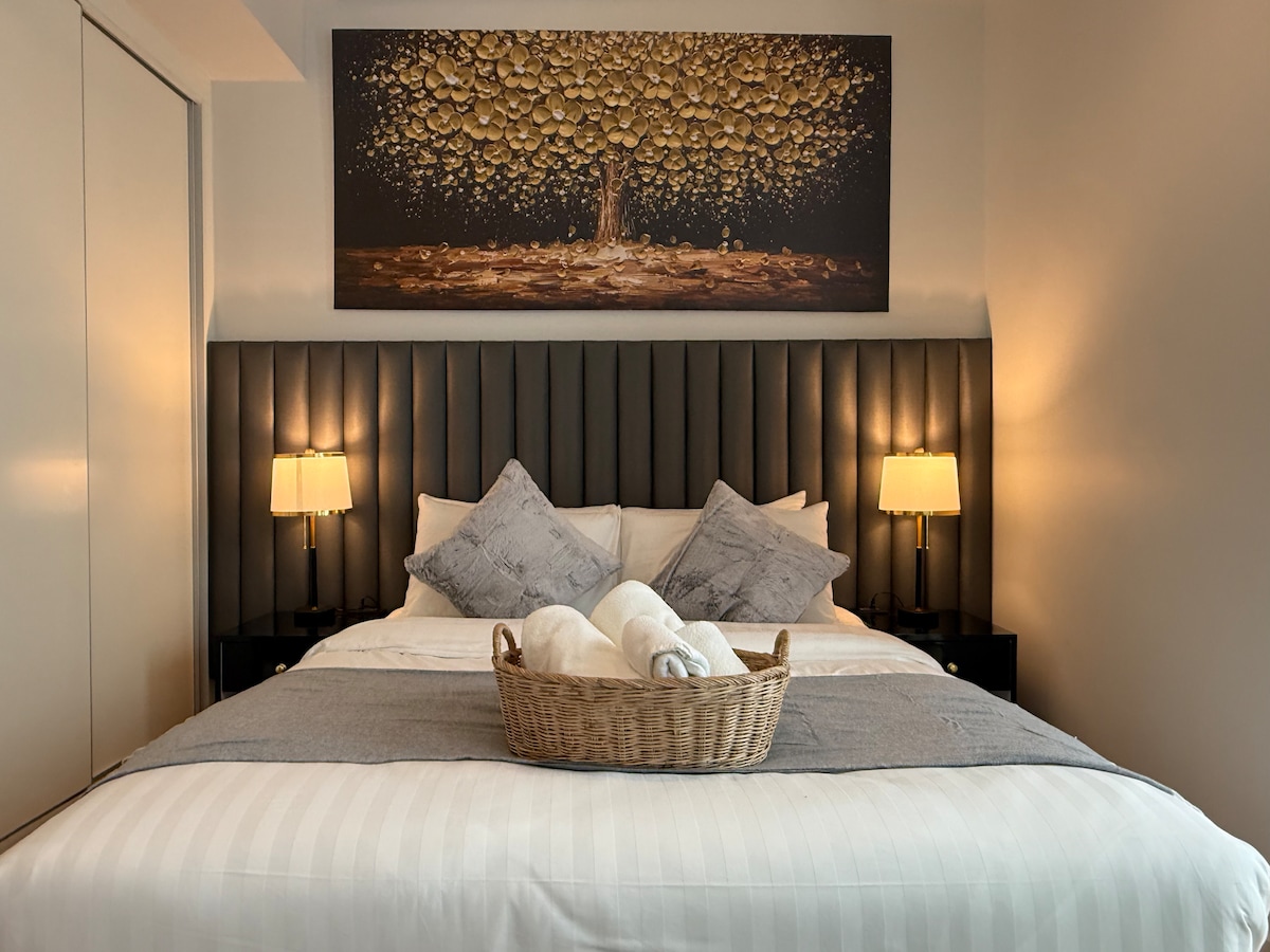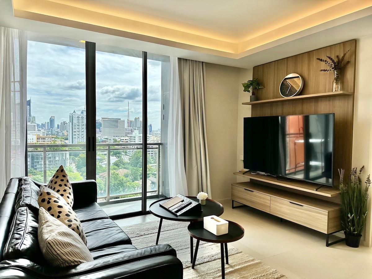Enjoy a relaxing stay in your modern city hideaway! ✅ Self check-in ✅ High-end mattress ✅ Individually A/C’d rooms ✅ Queen beds size ✅ 500 mbps Wi-Fi & work desks ✅ Living lounge + dining area ✅ Coffee machine ✅ Full kitchen + washer ✅ Iron & ironing board Close-by (walk): 🛒 7-Eleven – 5min (every corner!) 🚆 BTS Nana – 2 min 🌳 Benjasiri – 10 min 👜 Terminal21 Asoke (Only guests who book a stay of 30 days or more are allowed to access the swimming pool on the 38th floor)