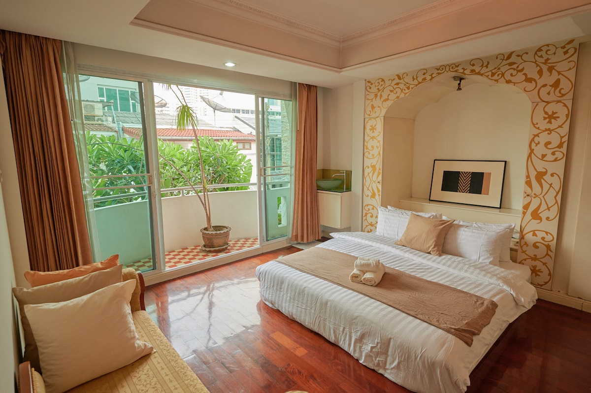 Welcome to your 440 SQM Pool Villa nestled in the ❤️ of Bangkok’s vibrant Thonglor! This exquisite & spacious villa offers luxury, cozy comfort, boasting 4 bedrooms & 5 full baths. Enjoy the blends of indoor and outdoor living spaces, and a large outdoor pool opens all year long. Conveniently walk to ThongLor BTS within 7-8 min, airport pickup & drop-off (2 vans) plus free cleaning service for a min 3 nights stay. Located in a safe and quiet neighborhood. Ideal for families, groups of travelers.