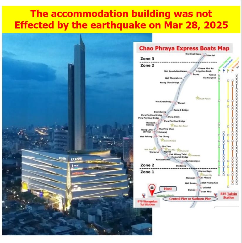 Welcome to Bangkok =) My place nearby the BTS Skytrain station Phonimit (S9) walk only 3-5 mins or free mini bus. 24 Hrs Mini mart 7-11, Cafe Amazon 20m. and nearby the shopping mall is The Mall Department Store just walk only 10 mins (700m.) Neayby ICONSIAM, Only 15 mins by taxi. (4.5km.) or by BTS.