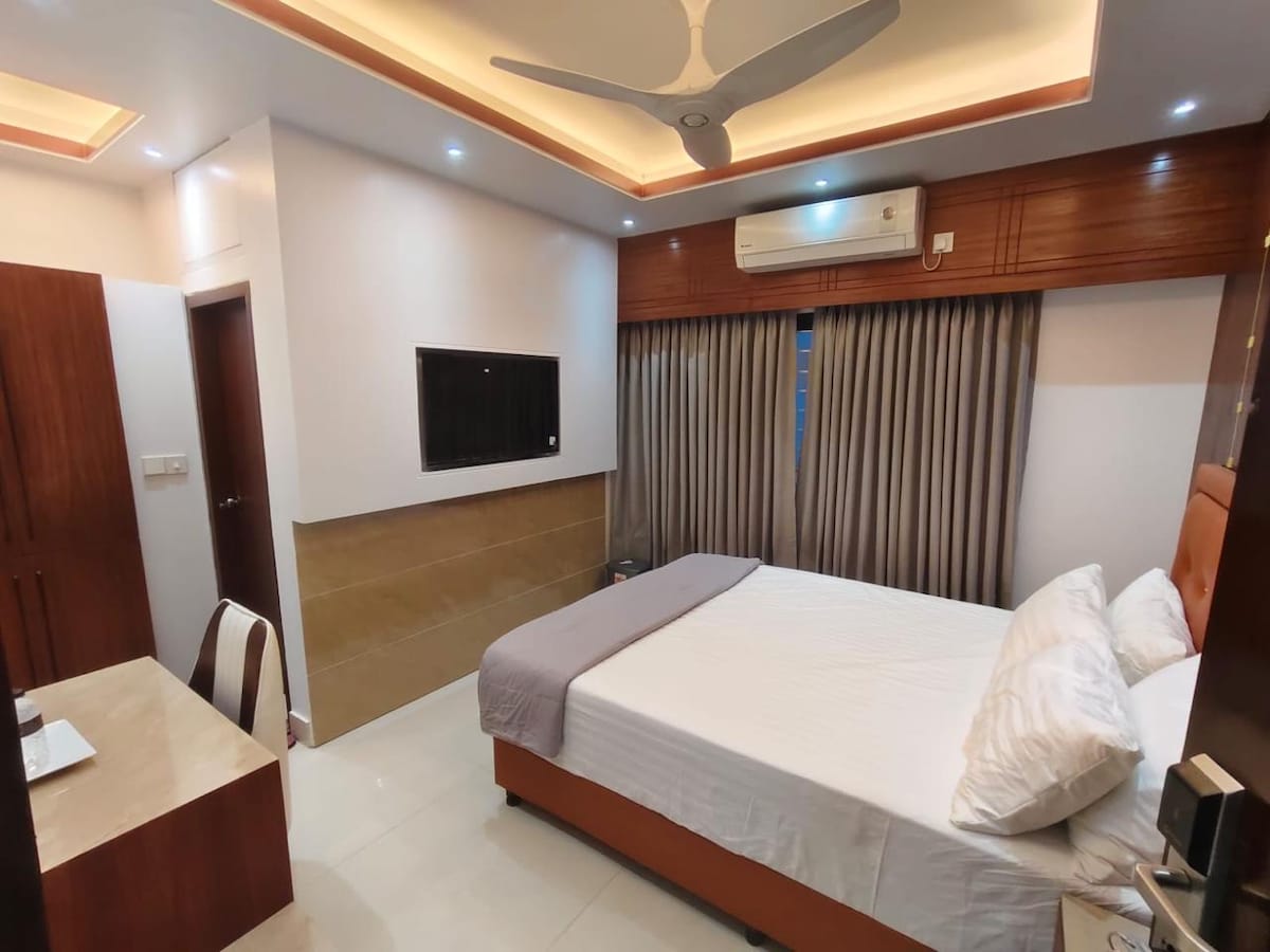 Designed with simplicity and functionality in mind, the room offers a clean, calm, and welcoming atmosphere. ✨ Room Features: comfortable king size bed Air conditioning Private attached bathroom Fresh towels & basic toiletries Free Wi-Fi Flat-screen TV Work desk / seating area Daily housekeeping 🏨 Hotel Amenities: 24/7 front desk & security Room service (if available) Power backup CCTV monitored premises 📌 House Rules: Valid ID (NID/Passport) required at check-in unmarried couple not allowed