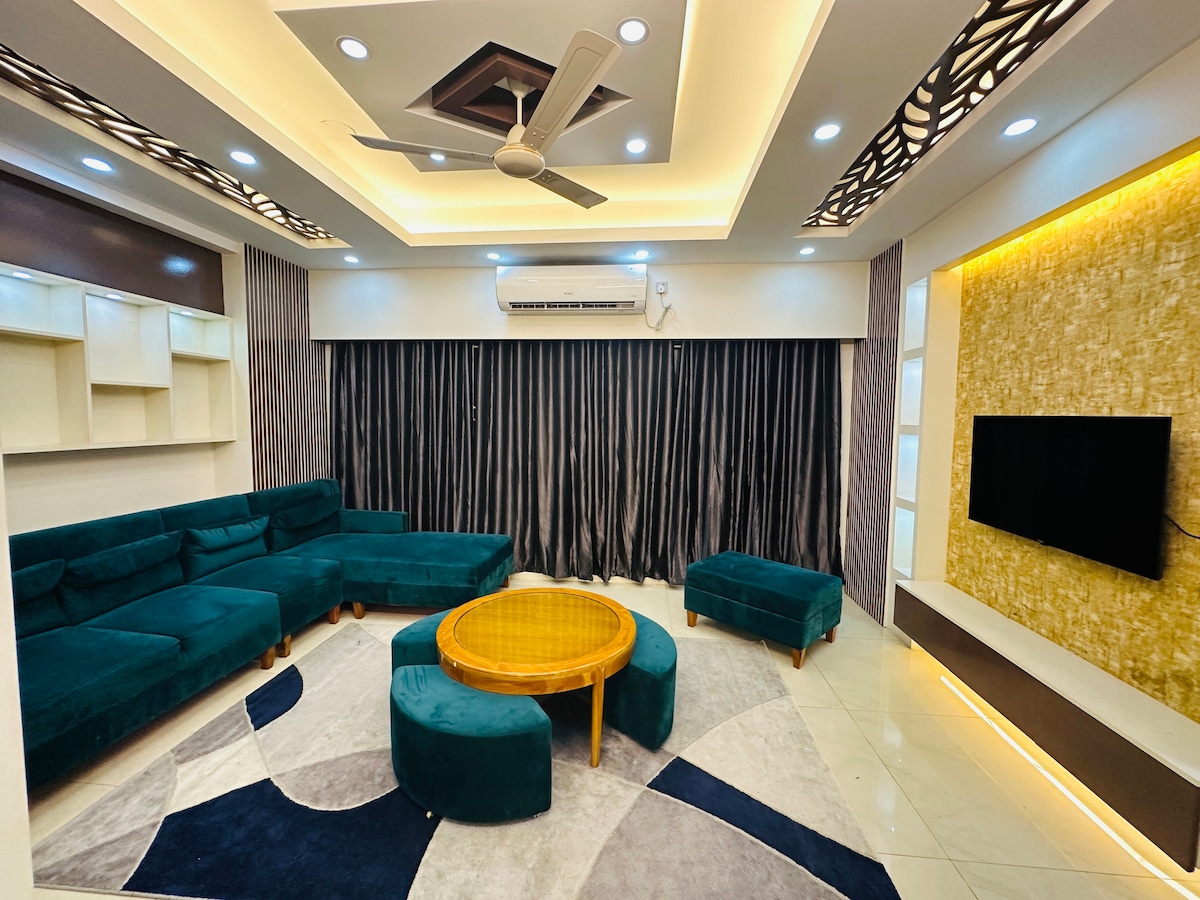 Reconnect with loved ones in this family-friendly place. close to airport and all amenities. Grocery, food chain shops are minutes away. Elegantly decorated with all house facilities. Separate Gym room with electric trade mill and other equipments. Exclusive library with huge collection of books. Three 55 inch TV, 6 AC, all Bathrooms with Geyeser, 6 battery IPS covering whole apartment in addition to generator. Floor ofvreal wood and spanish tiles. Expensive wooden furnitures.