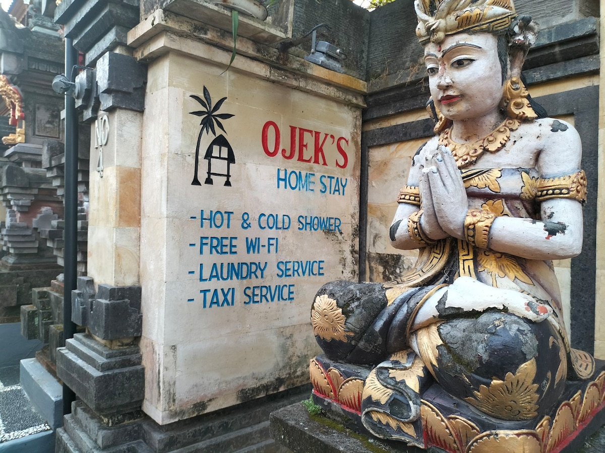 Our spacious and comfortable rooms have a queen-sized bed and provide hot and cold shower,wifi access and ceiling fan. Breakfast is included. We are located just 700m away from Monkey Forest and a 10 minute walk away from Ubud center. Im also provide taxi service for pick up,drop off,day trips around Ubud: Rice terrace Holy water temple Coffee plantation Waterfall Elephant cave temple Sunrise trekking Water rafting Cycling tour Cooking class Etc Please asking me for more information:)