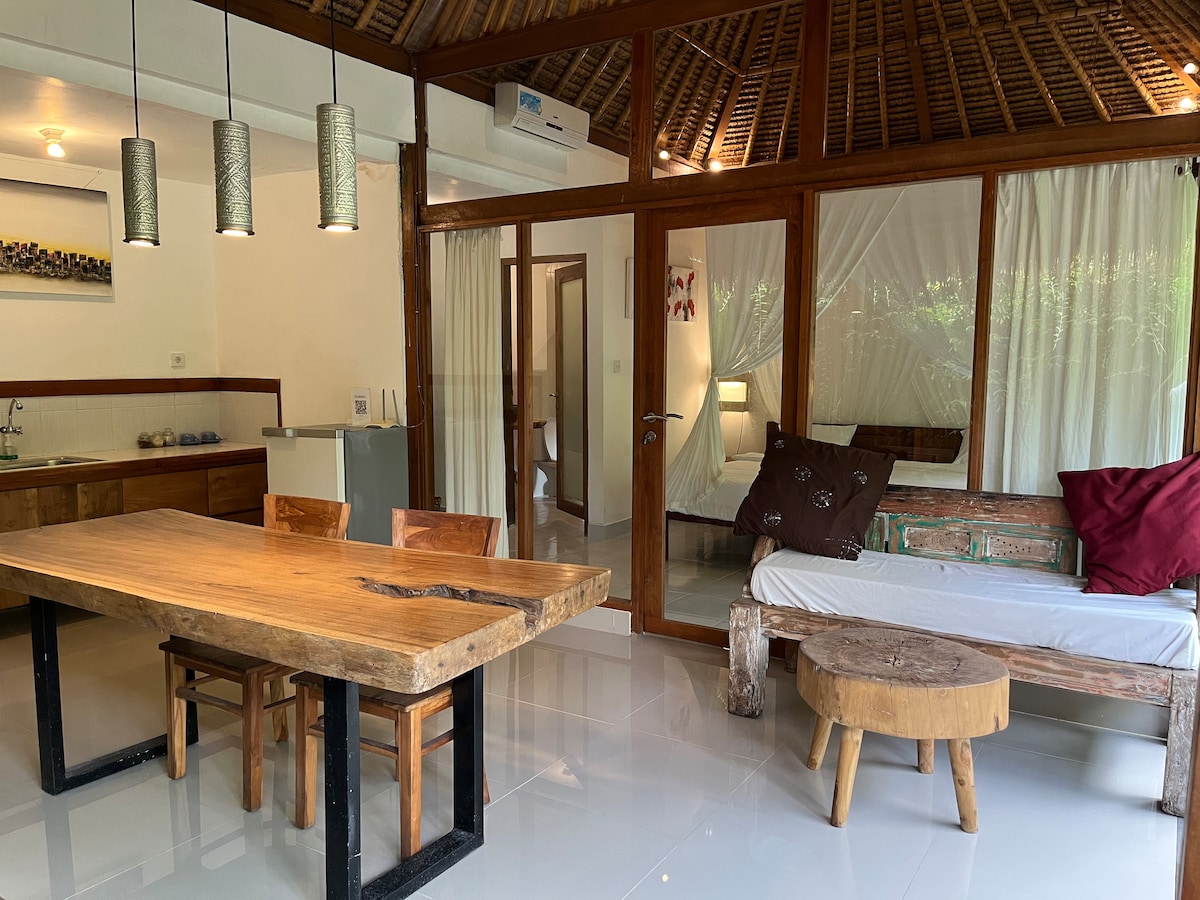Minimum 2 nights stay required Immerse yourself in the authentic Balinese experience at our beautiful individual wooden house. Located at Ubud surrounded by lush rice paddies, perfect setting to unwind and connect with nature. ⚠️ Important Information Before Booking: 🏡 Located right next to a rice field 🌿 Tropical Environment - As this is a nature-rich area, you may encounter insects, bugs, and other small tropical creatures 🍽️ Breakfast is included and served at the restaurant